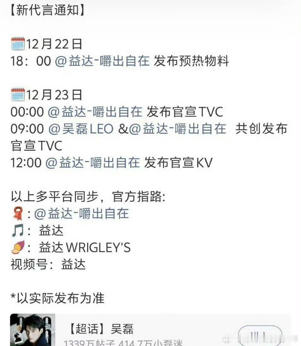 吴磊新商务益达即将开启预热 国民度很高的品牌恭喜🎉🎉🎉🎉