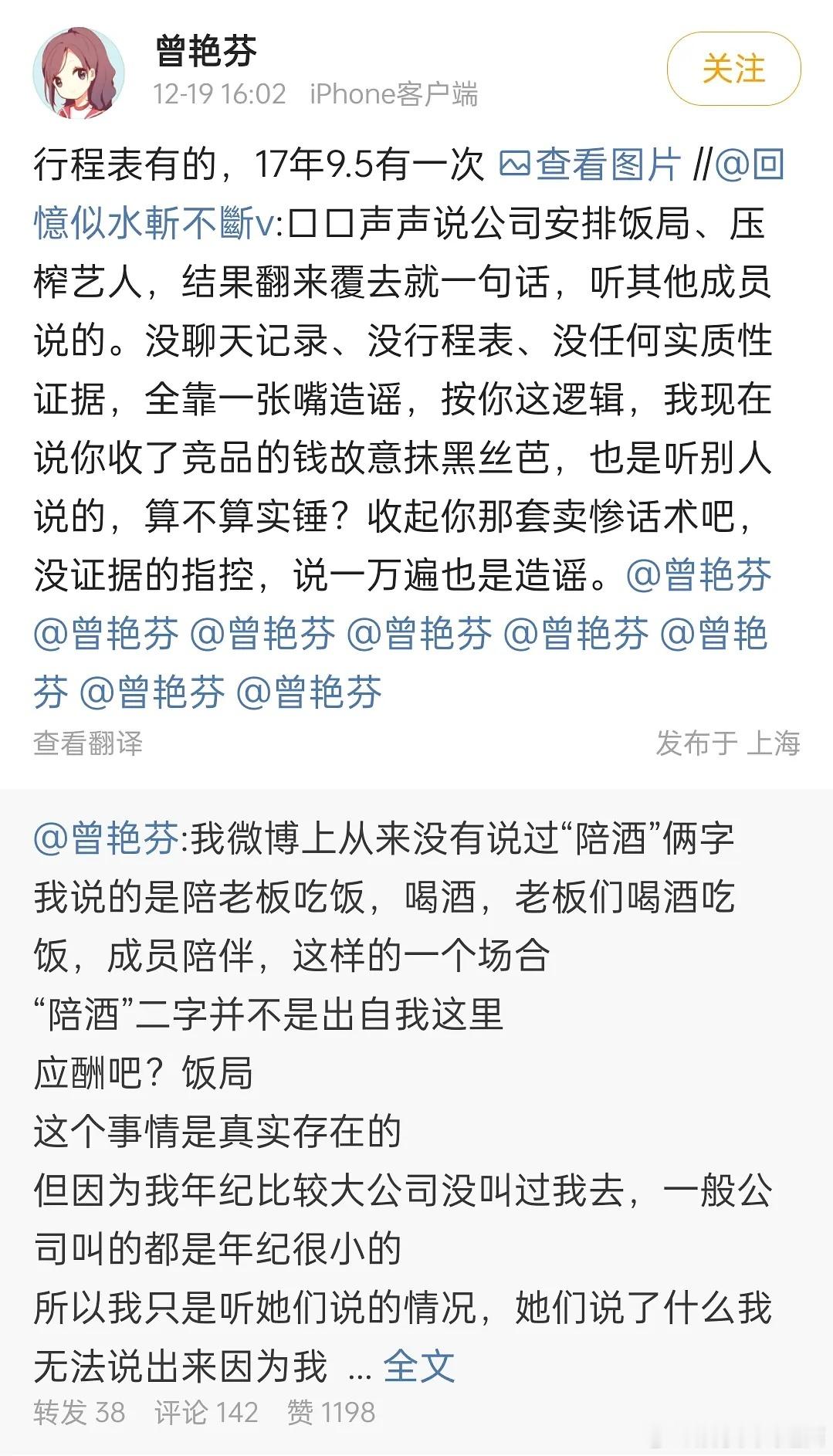 正常请吃饭,被歪曲影射……要是说穿得大胆点还有点陪酒的意思,干净整齐这四个字很难理解吗?普通上班族都有被老板请吃饭的时候,就这么赤裸裸给女性zhy曾艳芬从来没有说过陪酒俩字曾艳芬曝聊天记录