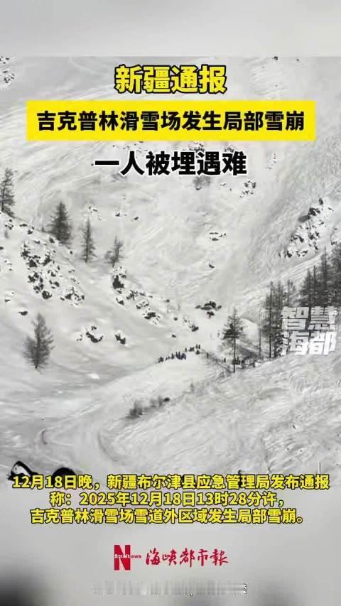 2025年12月18日,新疆布尔津县吉克普林滑雪场突发雪崩,一名游客不幸遇难,引