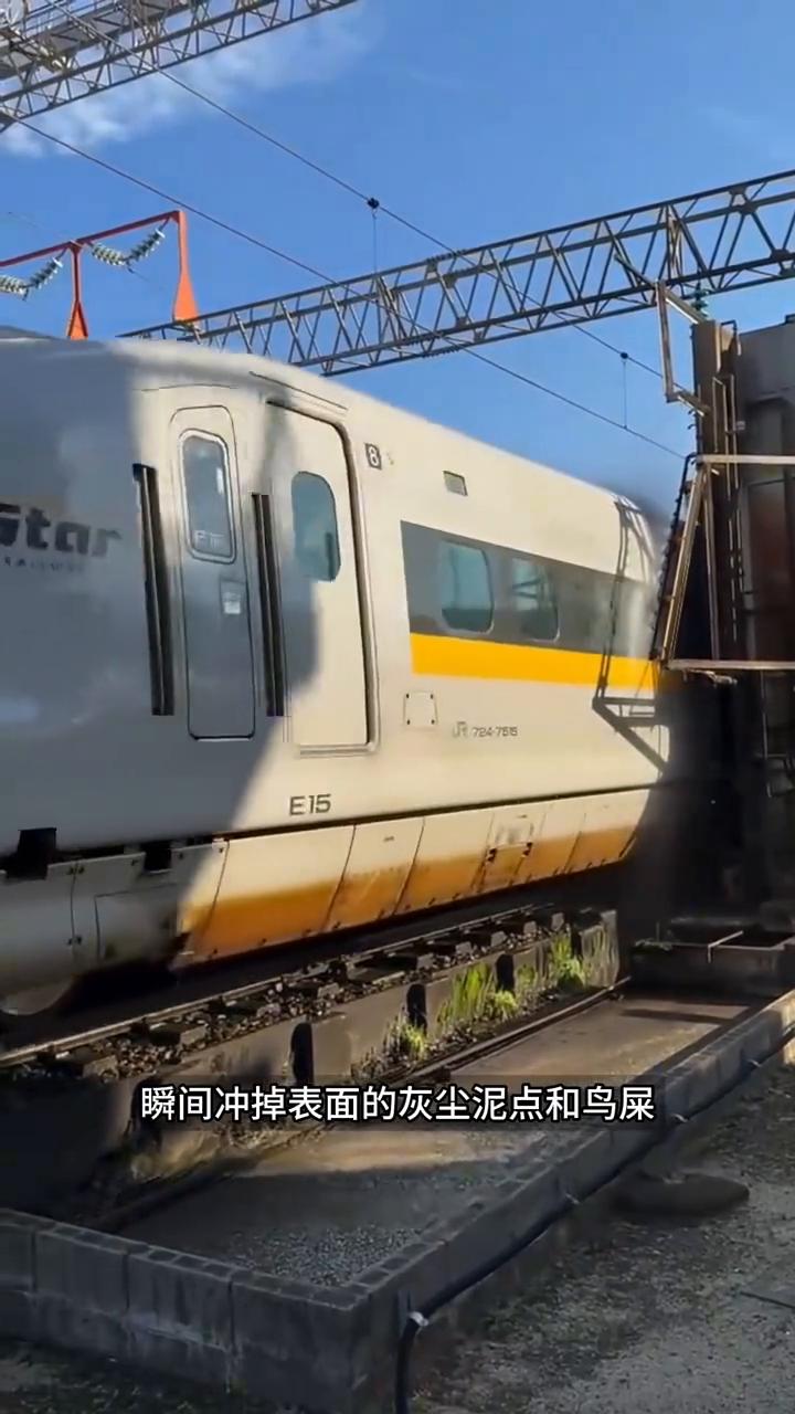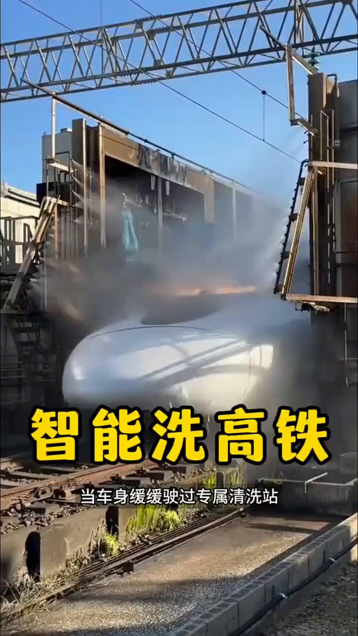 智能洗高铁。 原来高铁动车也和小汽车一样得经常洗车,只不过它的洗车方式格外智能,完全不用像普通洗车那样依赖人工,全程都是自动化运作。 当车身缓缓驶过专属清洗站,高压喷水器先喷出强劲水流,瞬间冲掉表面的灰尘、泥点和鸟屎。紧接着专门的大型毛刷会精准贴合车身,轻柔刷洗边角缝隙,把污垢彻底清理干净,让车身外观始终保持光亮洁净。 洗干净的高铁不仅看着崭新清爽,还能减少行驶风阻、降低能耗,同时保护车漆不被污垢侵蚀,延长使用寿命。不过清洗都安排在线路空闲时段进行,场地又在专属区域,不仅清洗时间短,还离站台远,所以乘客还是很少能见到这一幕。