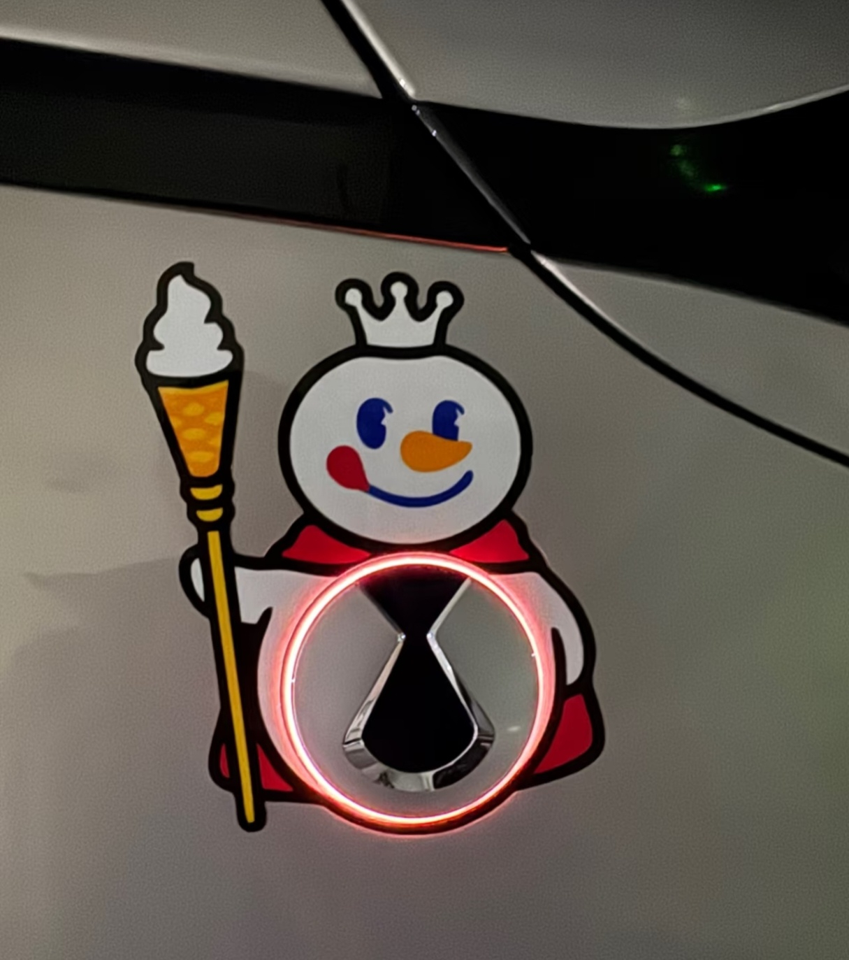 车若初见 最近经常能看到腾势车标被魔改,单看车标很平常,架不住网友脑洞太大,有雪王有钱袋子,还真挺有意思的,玩玩梗可以,建议别动前后标,容易别定义“非法改装”。