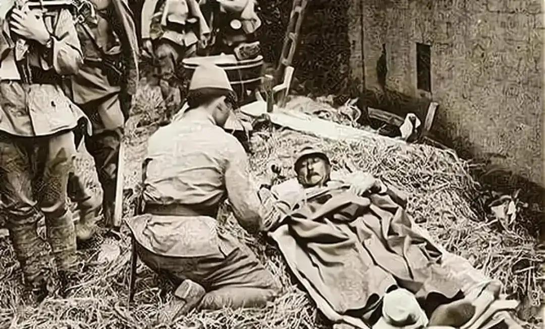 1939年中村正雄中弹被切开肚皮做手术时正好一枚炮弹击中屋顶,碎石灌满他的肚子