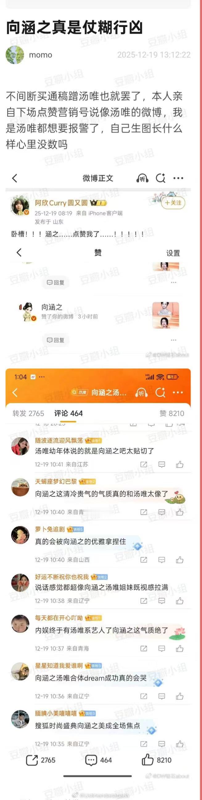 向涵之👍自己像汤唯的微博,她是不是那个什么三姐妹之一啊