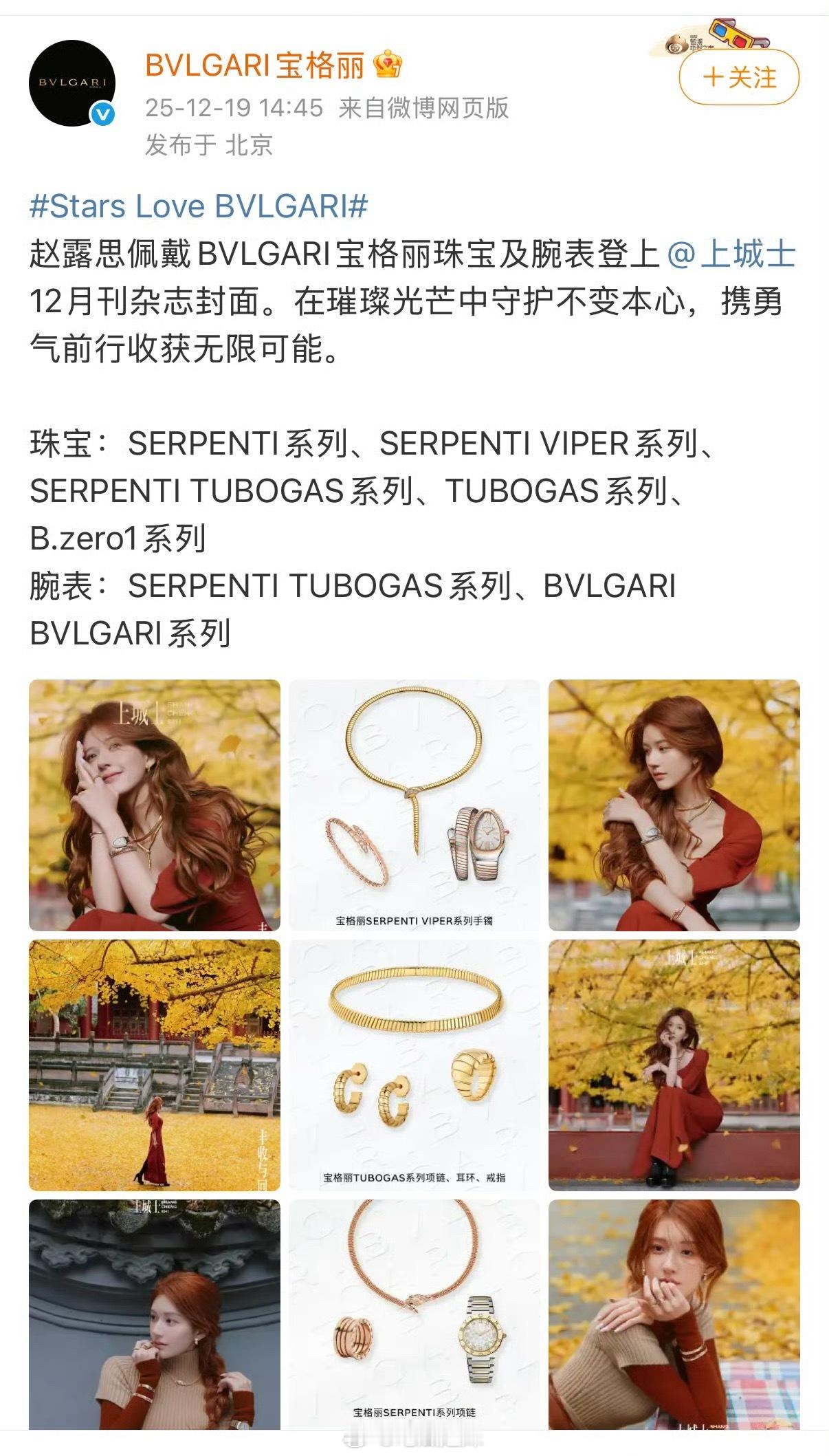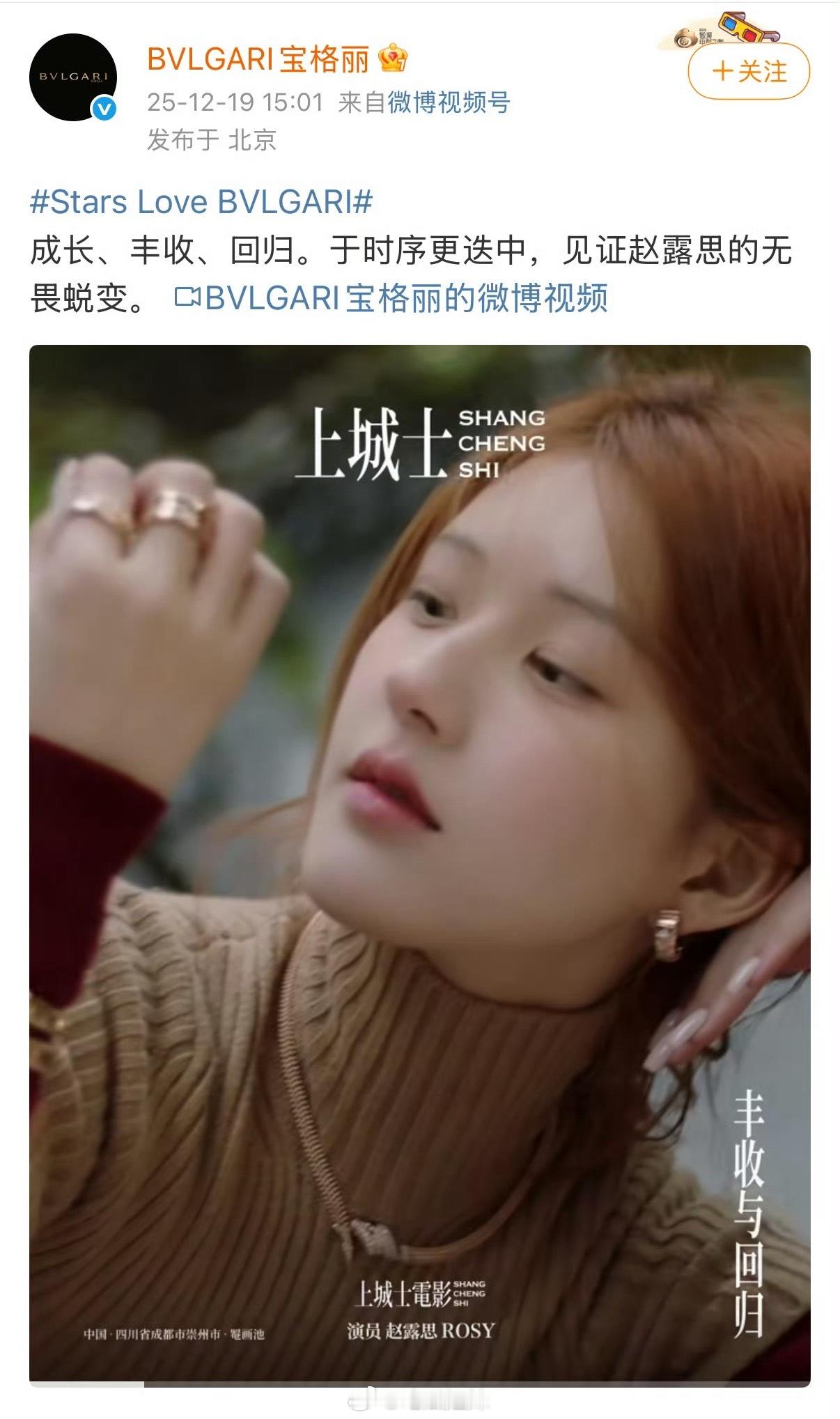 宝格丽连发三条微博认领赵露思,这个宝格丽也太爱了,就这样双向奔赴,期待有更多精彩合作!