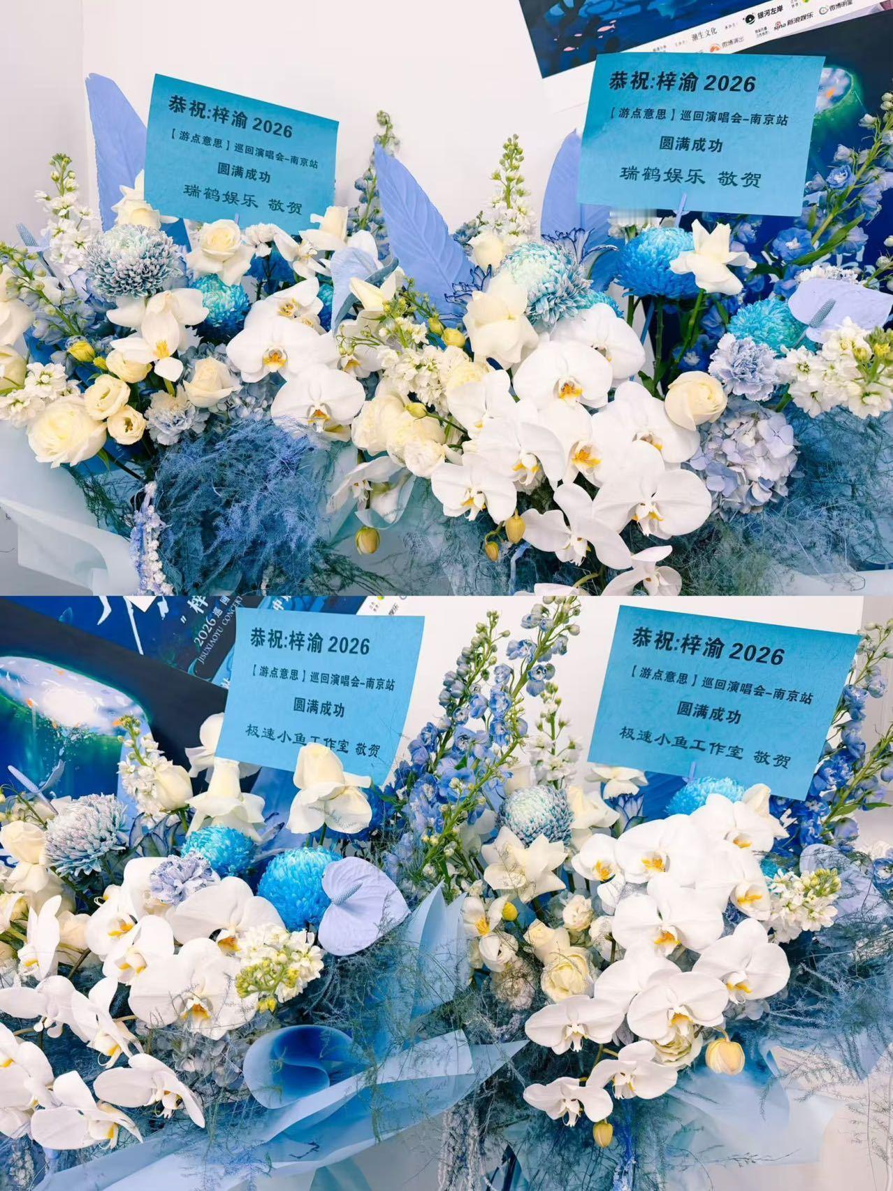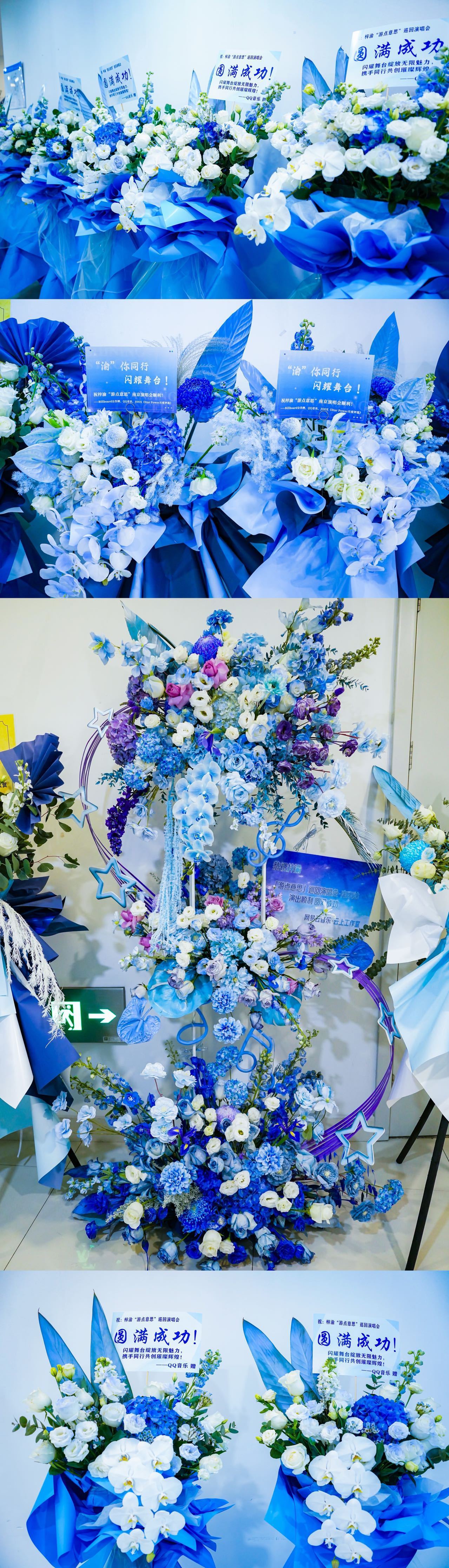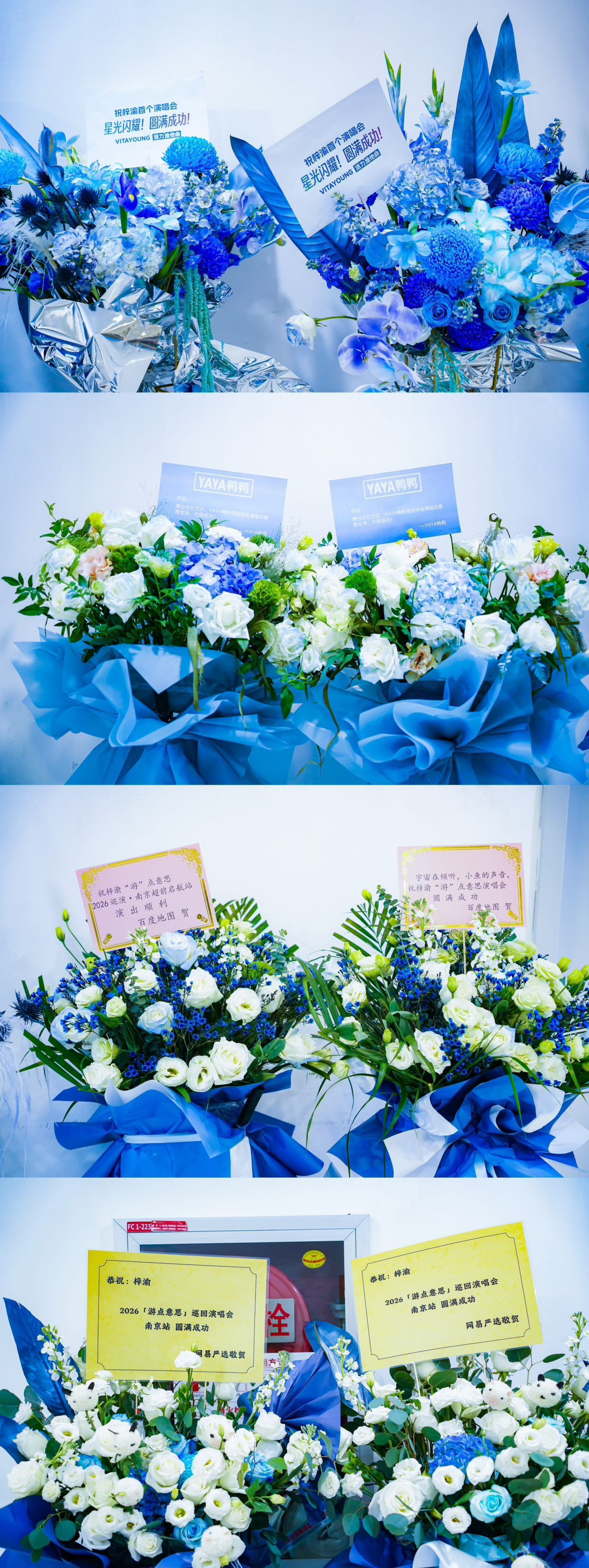瑞鹤娱乐发了梓渝演唱会收到的花篮,YUNI们送了好多啊,那一整面都是吧,署名是梓渝的YUNI,漂亮的花墙,和每一场造型的花篮;还有潮生文化、银河左岸、太湖湾音乐节、🐧音乐、Billboard公告牌、JOOX、网易☁️音乐云上工作室、VITAYOUNG活力维他命、YAYA鸭鸭、百度地图、网易严选、瑞鹤娱乐、极速小鱼工作室,都奉上了漂亮的花篮,演出顺利呀小梓渝!