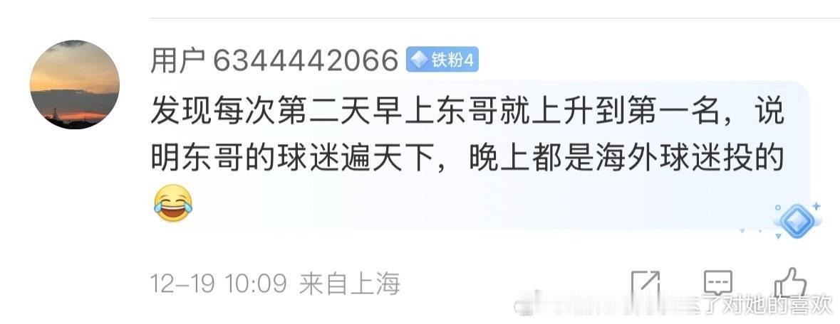 “发现每次第二天早上东哥就上升到第一名,说明东哥的球迷遍天下,晚上都是海外球迷投的。”,平时不是乒乓球小众运动除了东亚没有人玩的么