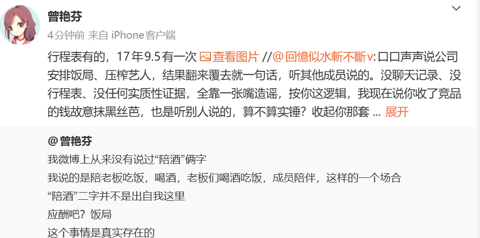 曾艳芬晒老板请吃饭聊天记录 曾艳芬晒出老板请吃饭聊天记录。