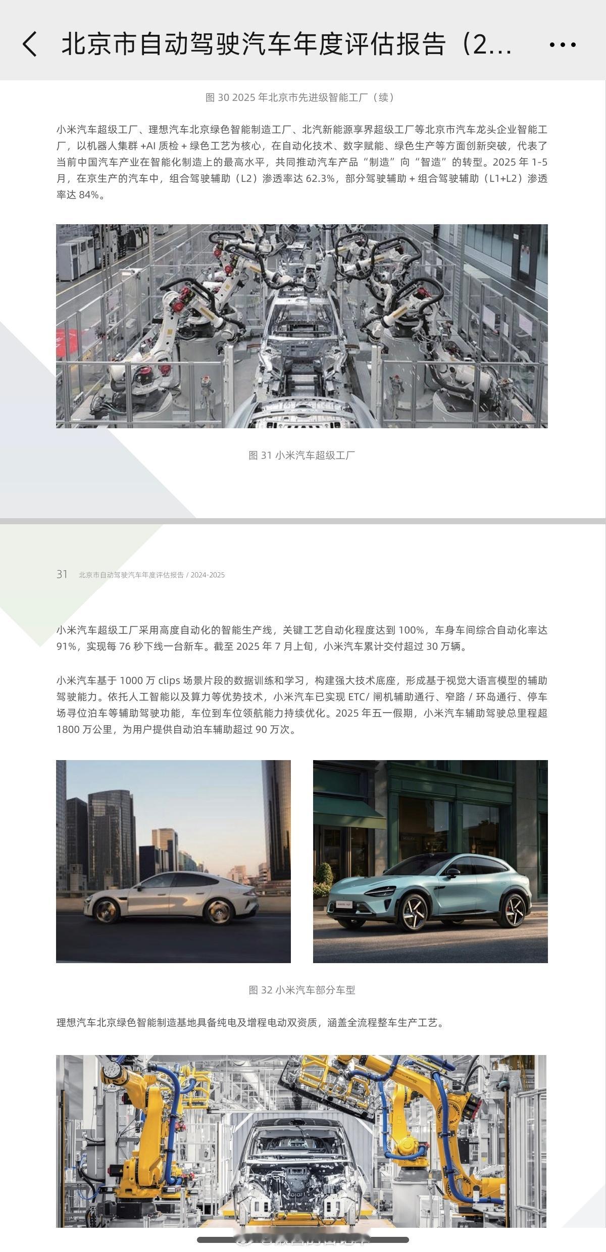 小米汽车获L3级自动驾驶路测牌照 恭喜小米汽车。据《北京市自动驾驶汽车年度评估报告(2024-2025)》显示,小米汽车已在北京市获得 L3 级自动驾驶道路测试牌照。并且听说小米的 L3 级自动驾驶测试车已经在北京部分高速路和快速路开始测试,相信真正的 L3 落地也不远了。拿到测试牌照的同时,也说明小米 L3 自动驾驶已经和行业头部保持相同水平,包括软硬件冗余、远程监管、数据记录等,小米作为后来者进步速度确实非常快。