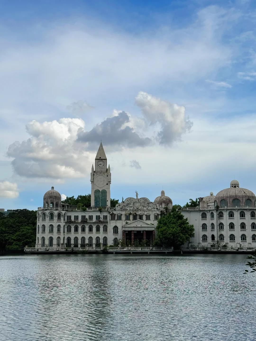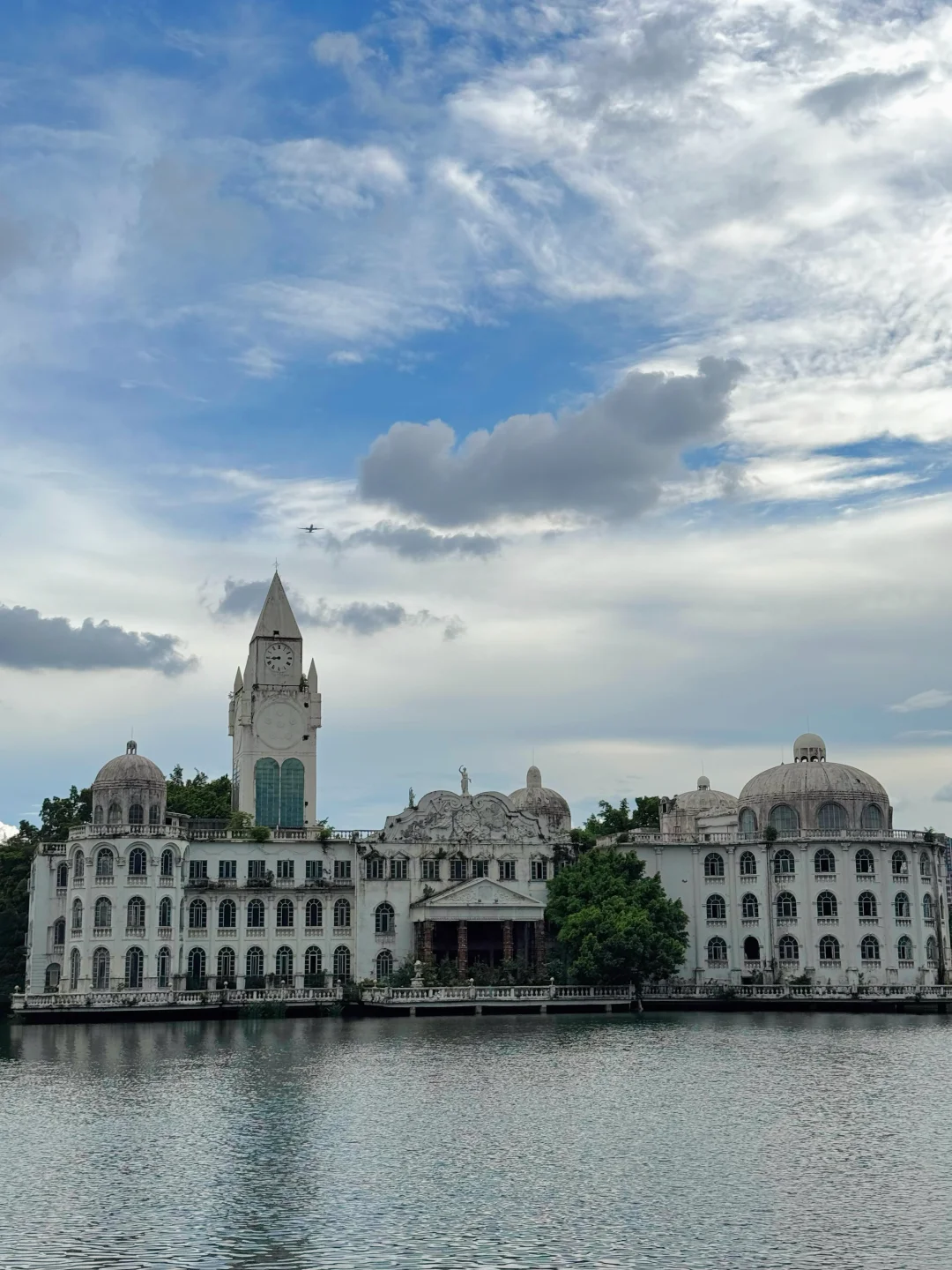 环湖的绿意漫过脚踝,湖水把天空揉碎了铺在水面,而那座白色的欧式建筑🏛️🏛️正踮着脚站在湖心