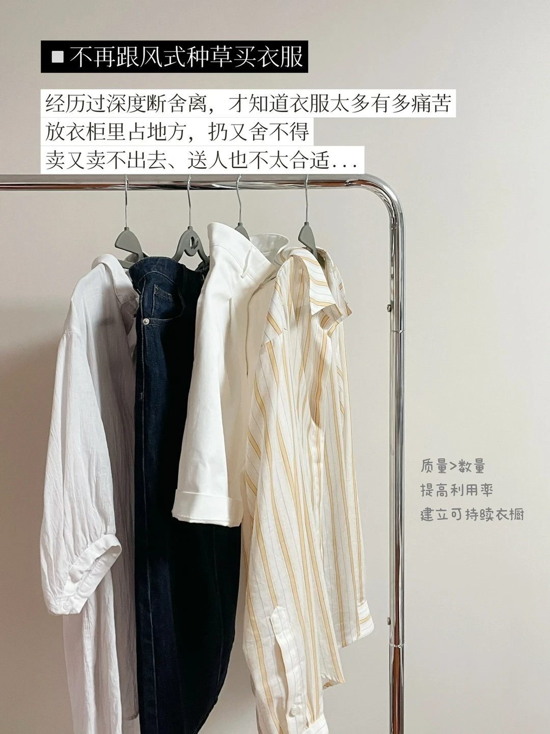 ✔学习穿搭思路代替盲目种草同款,买衣服重质不重量,建立高利用率、可持续的精简衣橱