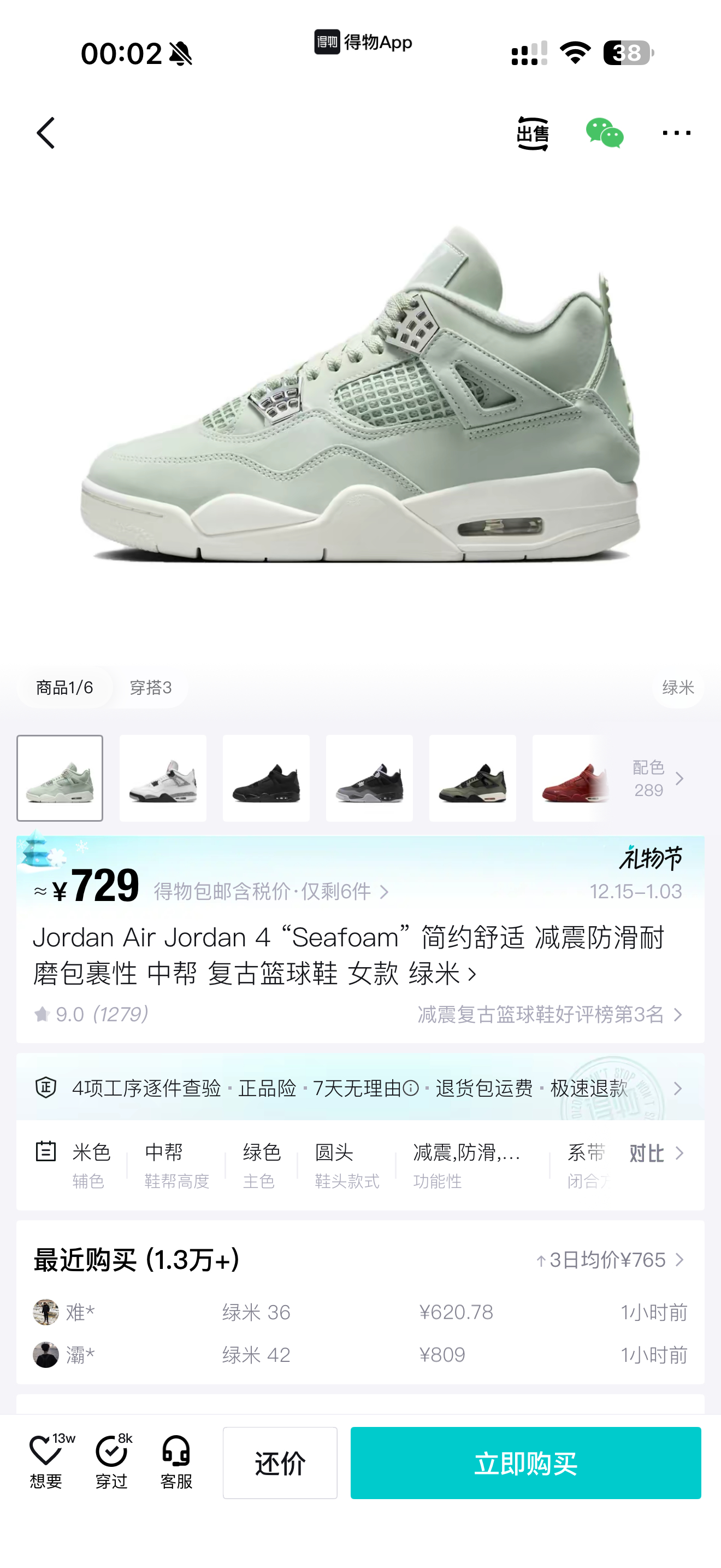 其实,几年前,哥们也是玩鞋的第一双就中了AJ4 OW,后来高价卖了,赚了好几千之后就再也没中过AJ4现在的价格有点香,这双薄荷绿,又便宜又好看🤩如何?你们觉得?
