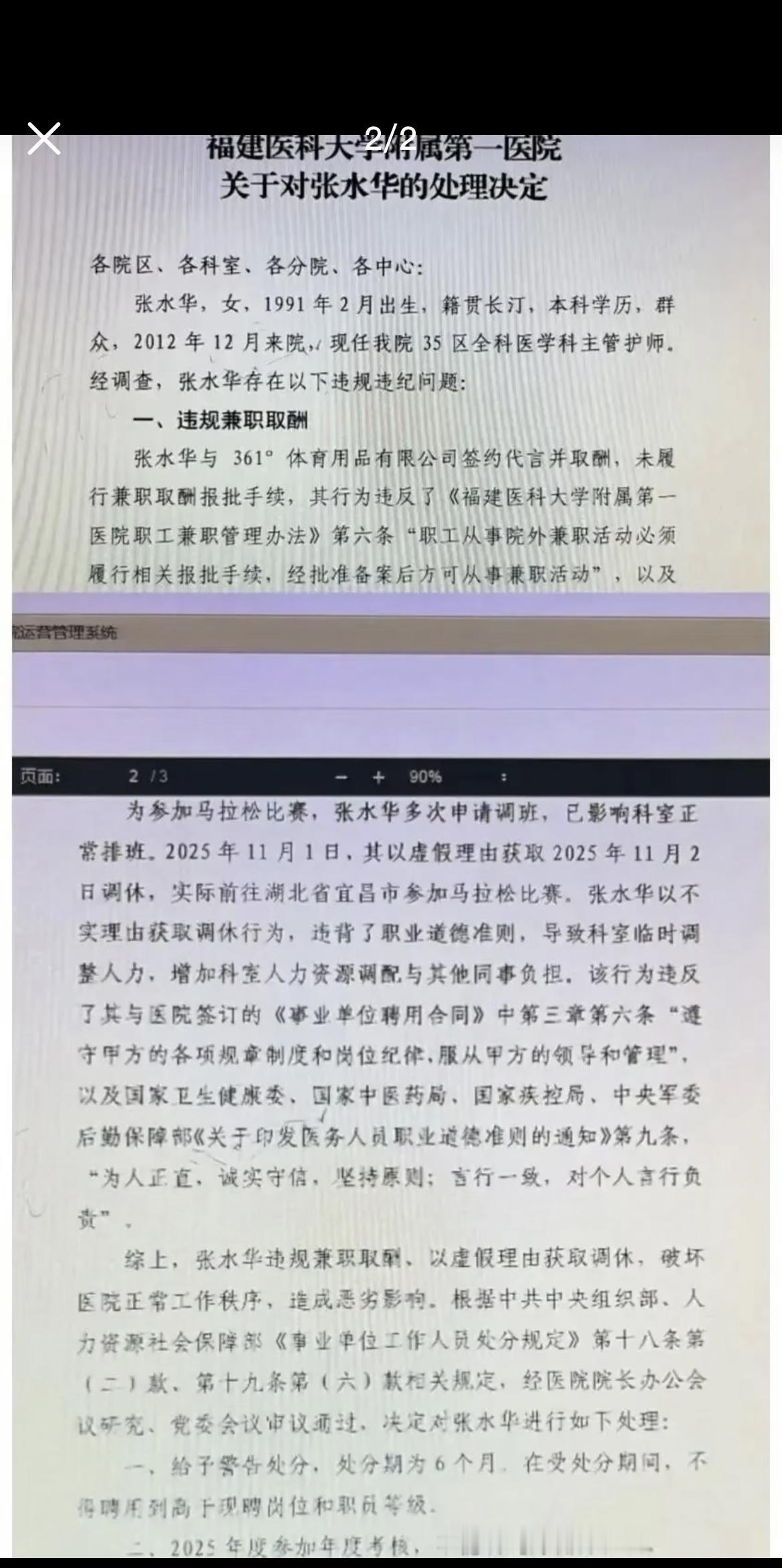 1. 兼职赚钱没报备:她跟361°签了代言合同拿了报酬,这属于上班之外的兼职,但按医院规定,兼职必须提前跟医院申请批准,她没走这个流程,属于违规拿钱,医院管得严,这步漏了肯定不行。 2. 撒谎骗假去参赛:为了跑马拉松,她多次申请调班,本来就打乱了科室的正常排班,后来更直接,用假理由跟医院申请11月2号调休,实际是去湖北宜昌跑马拉松。她这么一搞,科室得临时找人替她干活,硬生生加重了其他同事的工作负担,既违背了护士的职业操守,也违反了跟医院签的聘用合同。 之前她还公开说会分清工作和跑步,不影响本职,结果之后还犯这些错,言行不一让大家更有意见。而且她之前夺冠后哭着求领导支持调休,相当于把职场里的事闹到网上施压,也让医院和同事都挺为难的。最后医院查实后,给了她6个月警告处分,今年还不能参与评优,算是对她违规行为的处罚。 人非无过,大家评论下