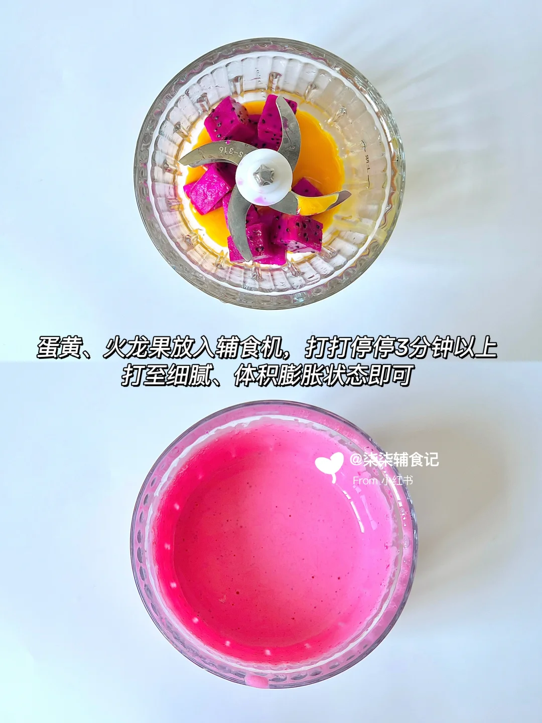 ▫️火龙果和蛋黄一起放入辅食机,打打停停3分钟以上