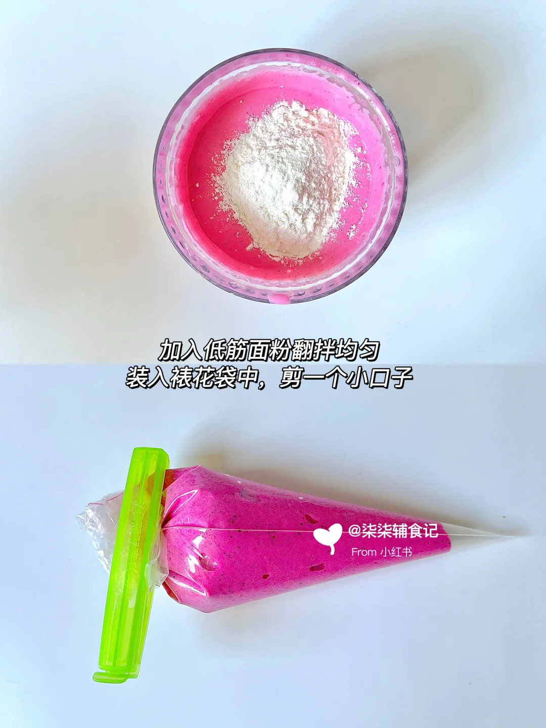火龙果40g➕低筋面粉35g➕蛋黄2个