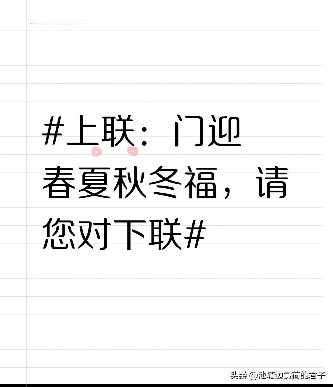看到“门迎春夏秋冬福”这个上联,我第一反应就是经典下联“户纳东西南北财”。这对联对仗工整得没话说,“门”对“户”,都是家里的一部分;“迎”对“纳”,都是接收的意思;“春夏秋冬”对“东西南北”,一个是四季,一个是四方,全方位的感觉就出来了;“福”对“财”,谁不想要福气和财气呢。 上下联连起来,就是希望家里一直兴旺,福气和财气从各个方向、各个时节都往家里跑。而且平仄搭配也符合传统要求,是很受欢迎的吉祥春联,过年贴它,超有氛围!