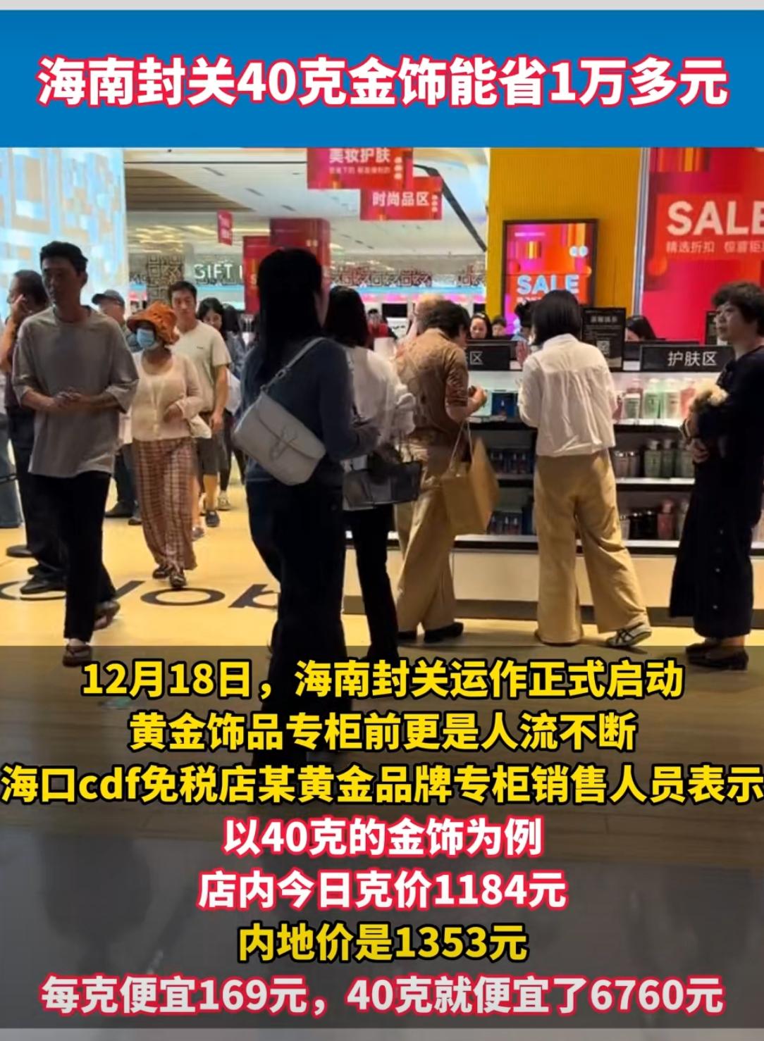海南封关首日疯抢名场面!40克金饰能省1万多元,1.5吨半价榴莲1小时抢空! 12月18日,海南全岛封关运作正式启动,“零关税”红利全面释放,海口各大消费场景掀起抢购热潮:免税店黄金专柜排起长队,超市半价榴莲1小时售罄,网友直呼“省钱力度堪比‘薅羊毛天花板’”,现场热闹程度不输春运。 封关后最吸睛的当属免税黄金的差价福利。在海口cdf免税店某知名黄金专柜,销售人员给算清了一笔“省钱账”:当天免税克价1184元,比内地市场价1353元每克便宜169元,40克的金饰单克价差就省6760元;叠加门店“满1万减500”活动,4万多元的金饰可再减2000元,基础优惠已达8760元。若能抢到海口政府发放的消费券——30000元减2400元的大额券,40克金饰最终能省下11160元,相当于直接“打八折”。不少消费者拿着计算器比价,有阿姨一口气买下两条金项链,笑着说“省的钱够再去趟三亚旅游”。 另一边的旺豪超市更是火爆到限流。18日凌晨,1.5吨顶级猫山王榴莲新鲜到港,上架价直接腰斩,比平时便宜一半。消息传开后,市民游客纷纷赶来排队,队伍从超市入口蜿蜒至马路边,有网友拍下现场视频调侃“比春运买火车票还挤”。据超市工作人员介绍,这批榴莲品质上乘,果肉饱满软糯,凭借超高性价比,短短1小时就被抢购一空,晚到的顾客只能空手而归。 除了黄金和榴莲,封关后的免税福利还有更多惊喜。此次“零关税”商品清单从1900个税目激增至6600余项,涵盖47大类商品,新增宠物用品、便携乐器、扫地机器人等热门品类,服装服饰、茶叶、陶瓷等6类国货也纳入免税范围 。数码产品同样差价诱人,iPhone 17 Pro Max、华为折叠屏手机等最高能省2000多元,大疆无人机便宜约1500元,成为年轻人的抢购重点。 想要最大化享受优惠,还能叠加多重福利:每天上午10点,云闪付APP可抢“购在海南”政府消费券,最高能享“满50000减4000”;免税店官方APP新用户可领百元礼包,银行信用卡还有额外立减活动,会员积分还能直接抵扣现金。不过需要注意,免税购物需年满18周岁,凭身份证件和离岛凭证购买,每人每年有10万元免税额度,超额度部分需按规定补税。 海南封关不仅让消费者享到实惠,更让“岛内自由、二线管住”的政策落地见效。从黄金珠宝到生鲜水果,从高端数码到国货精品,丰富的选择和实在的优惠,让海南成为新晋“购物天堂”。你准备好赴琼薅羊毛了吗?最想入手的免税品是什么? 海南封关 海南封关40克金饰能省1万多元 海南封关首日1.5吨榴莲1小时被抢空 海南免税购物攻略 创作训练营2期开营啦海南封关 封关40克金饰能省1万多元 首日1.5吨榴莲1小时被抢空 海南免税购物攻略