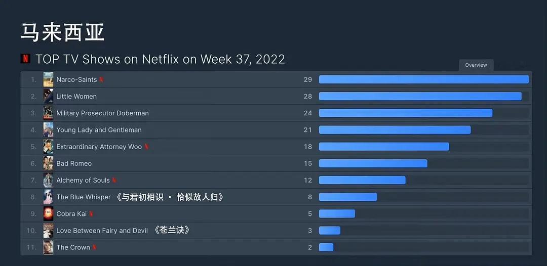 Netflix显示:《长安二十四计》在各地区热度排名都在跌。。???