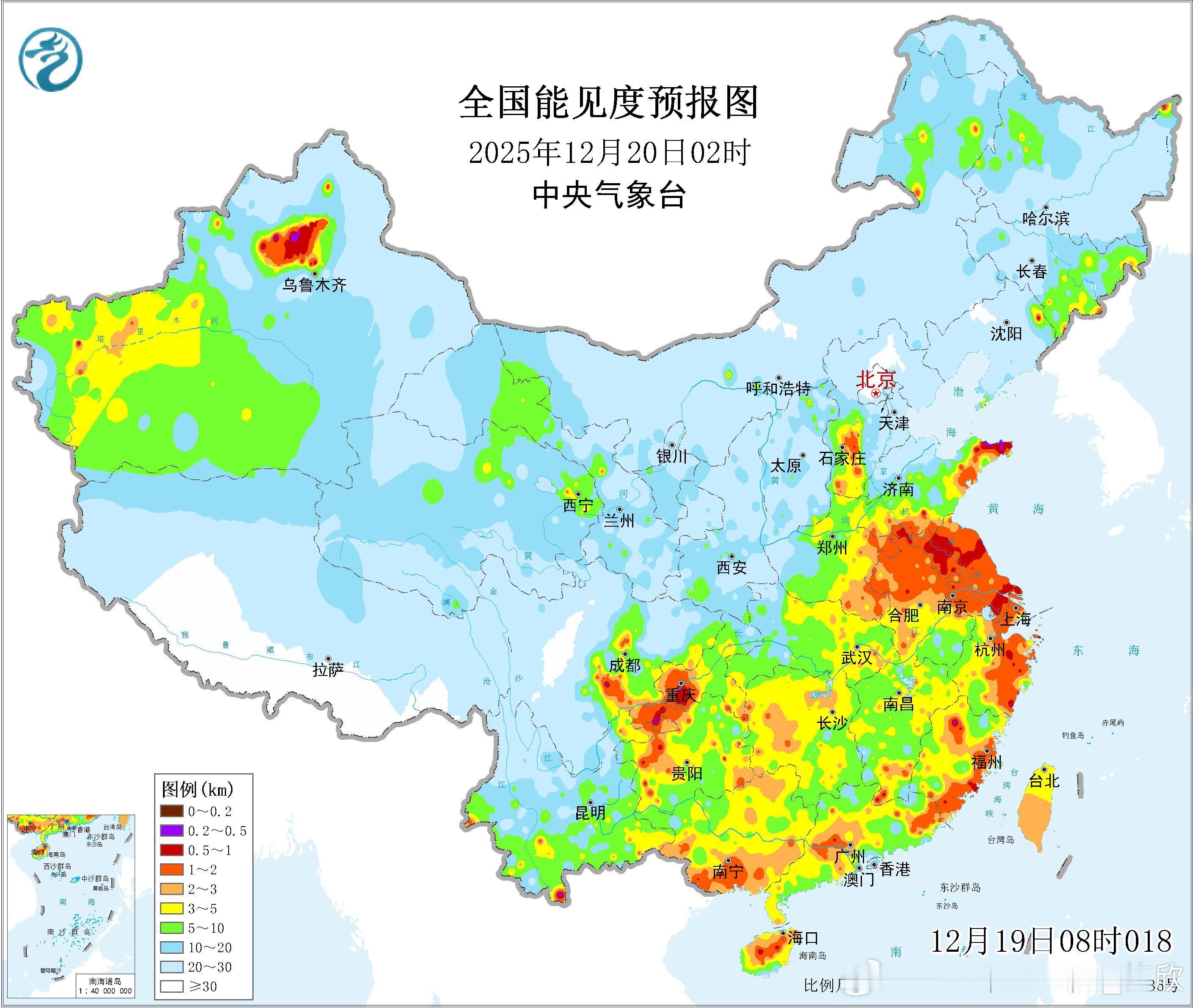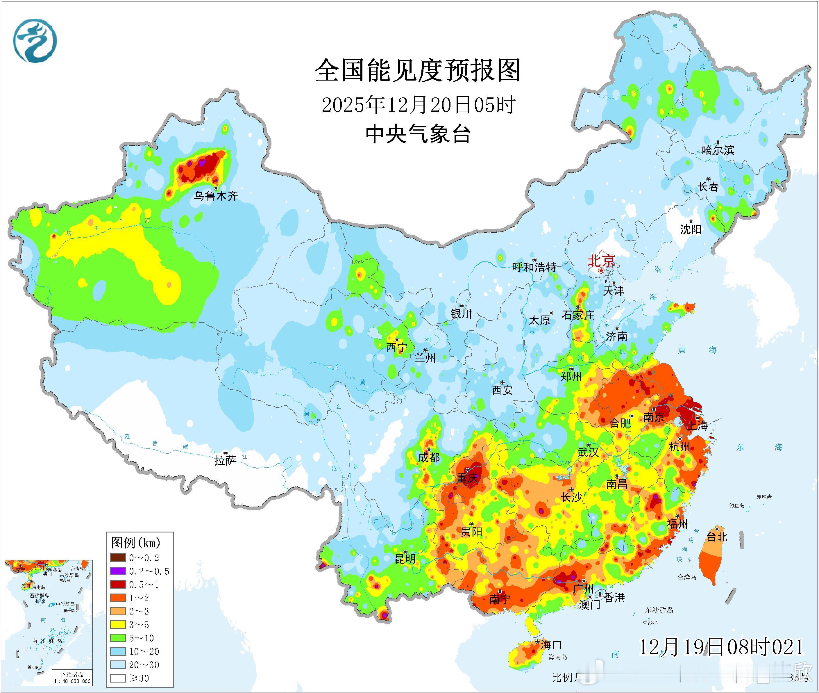 【大雾缩减】今晚到明天,干冷空气南下,华北黄淮的空气湿度逐渐降低,雾将明显减少。今晚中央气象台解除了大雾预警。不过明晨在重庆、安徽、江苏、上海等地,冷空气尚未抵达前,不排除还有雾出现。