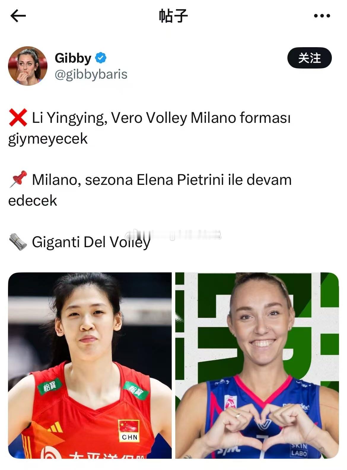 伊萨奇巴希官宣加拿大替补接应斯姆雷克加盟。加上近期传闻的伊萨在联系李盈莹和斯姆雷克,相互印证之下,看来李盈莹也很快就要有消息了。中国女排李盈莹