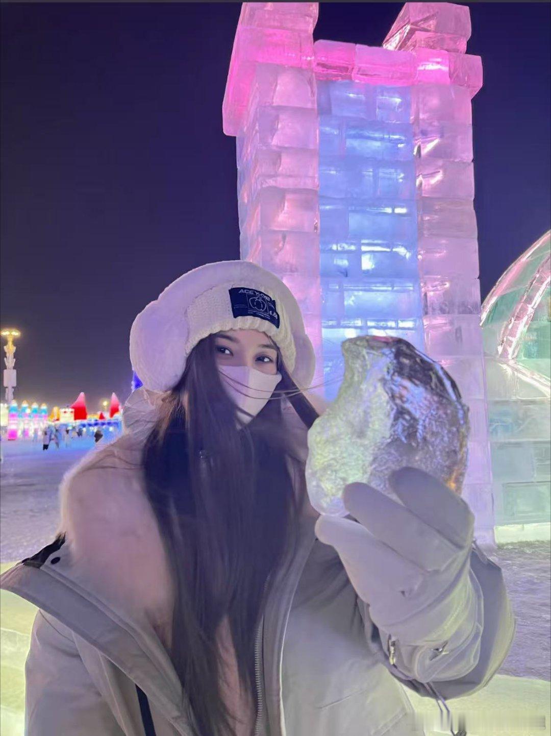 徐艺洋冰雪大世界游玩照来喽徐艺洋到哈尔滨了徐艺洋打卡哈尔滨冰雪大世界