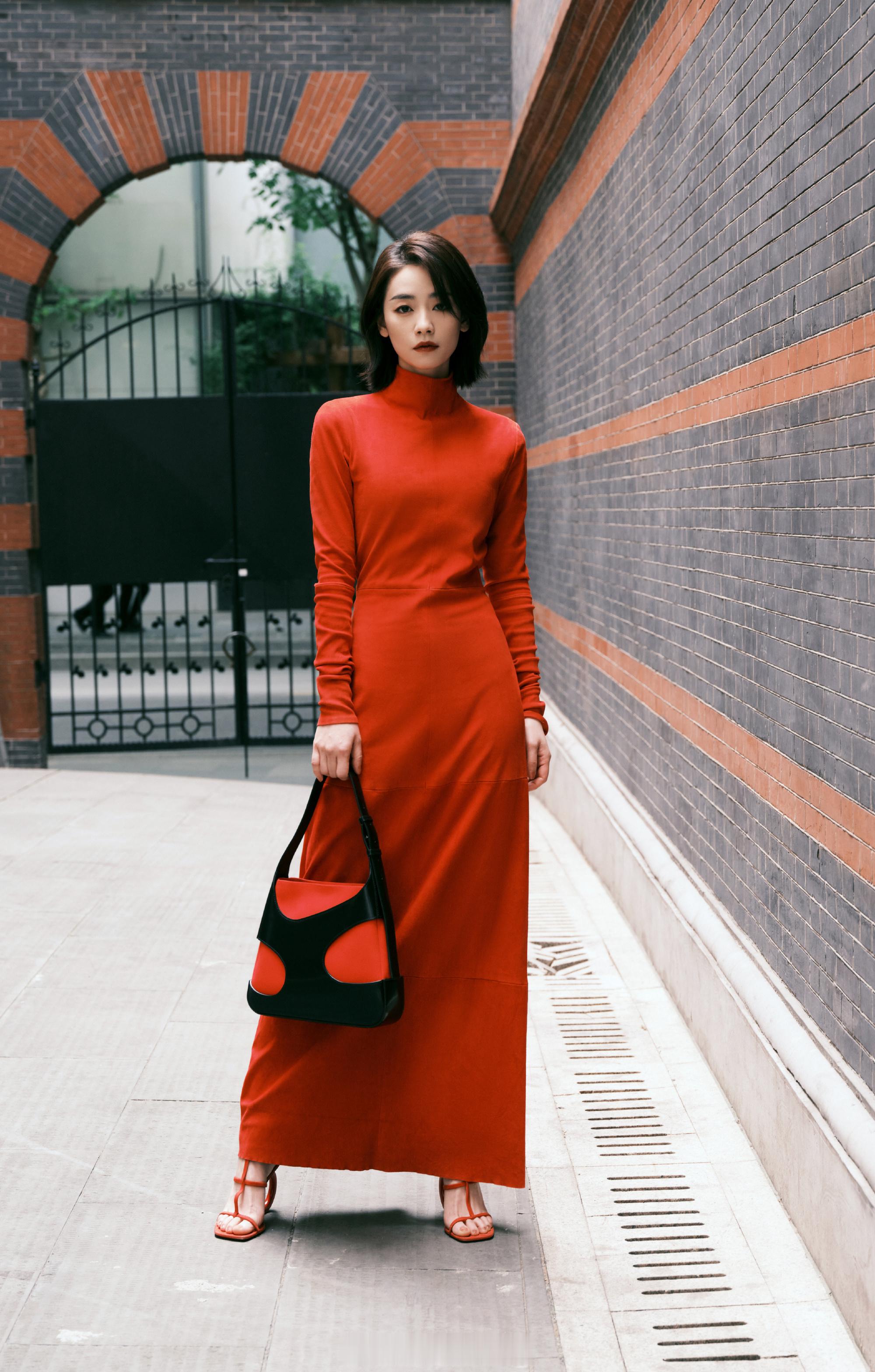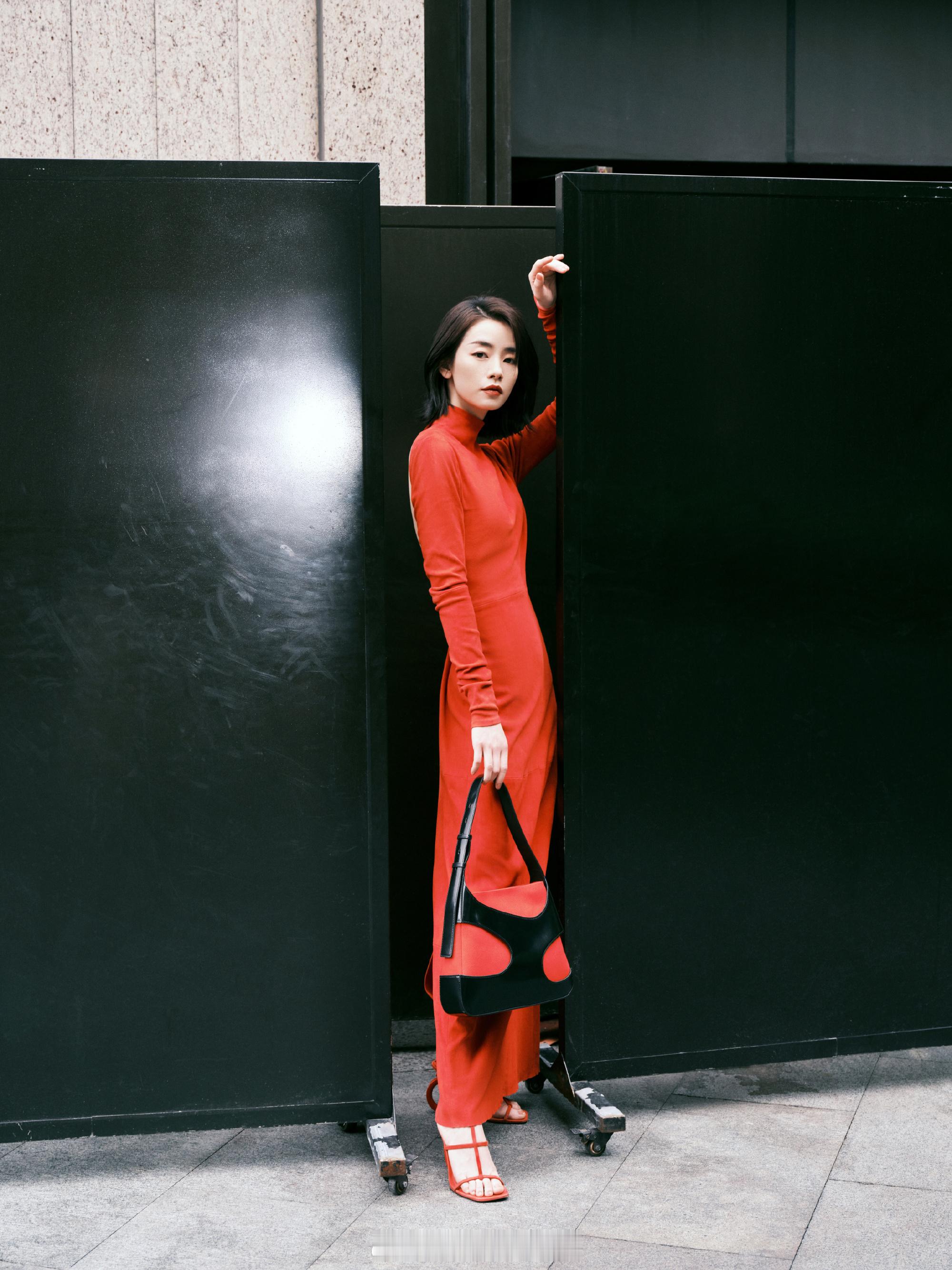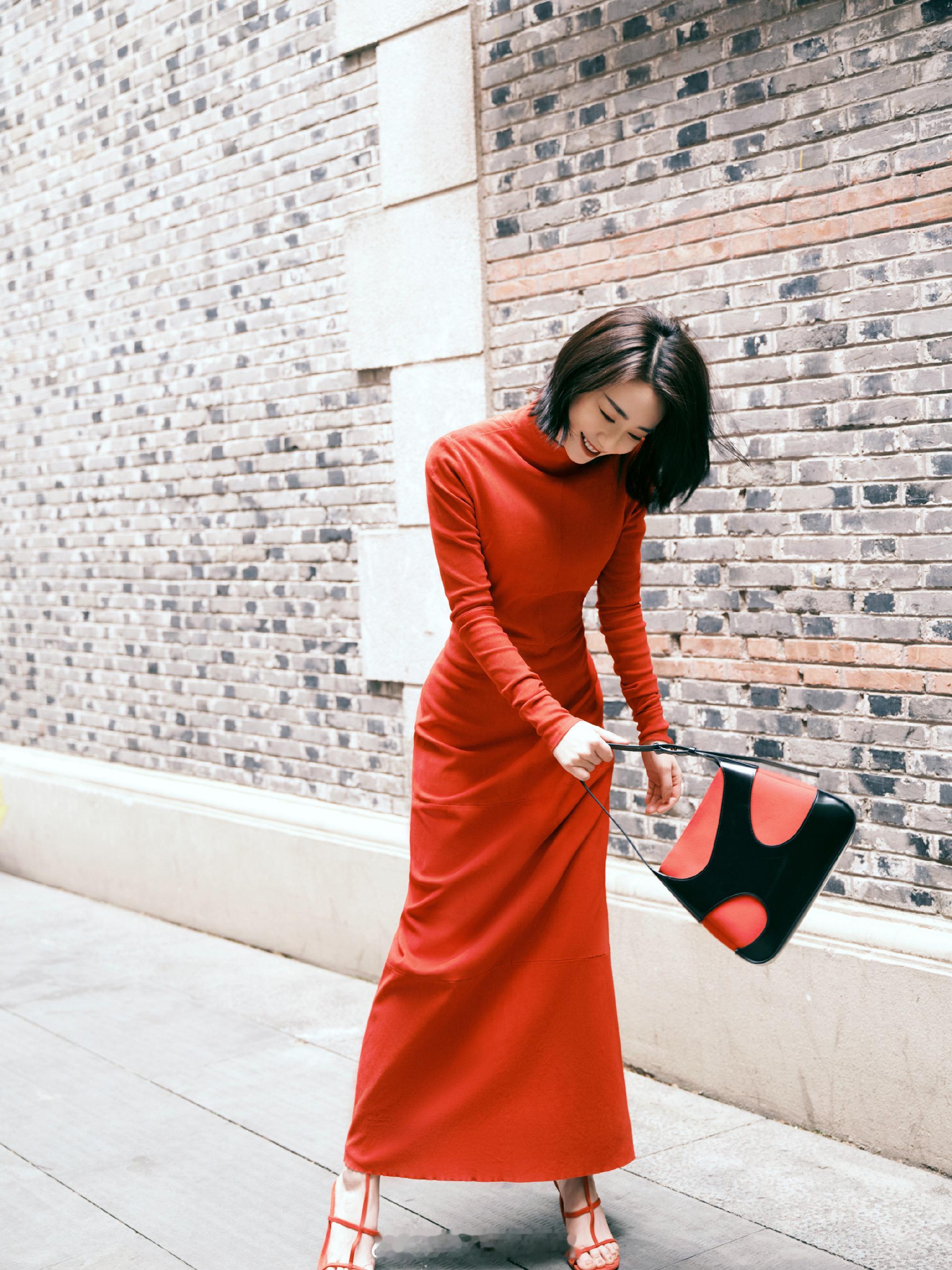 刘雅瑟露背红裙