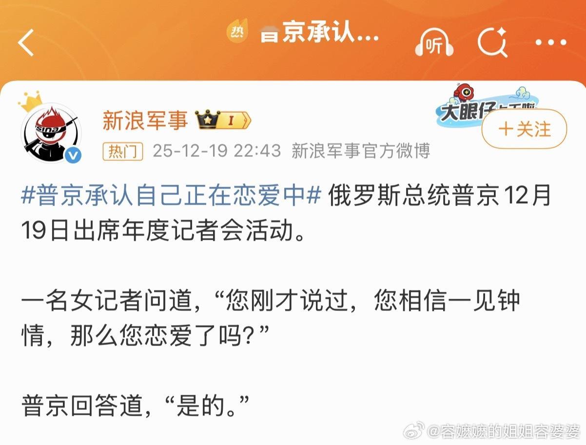 普京承认自己正在恋爱中73岁的普京大帝恋爱了!!!好想知道女方是谁!!!