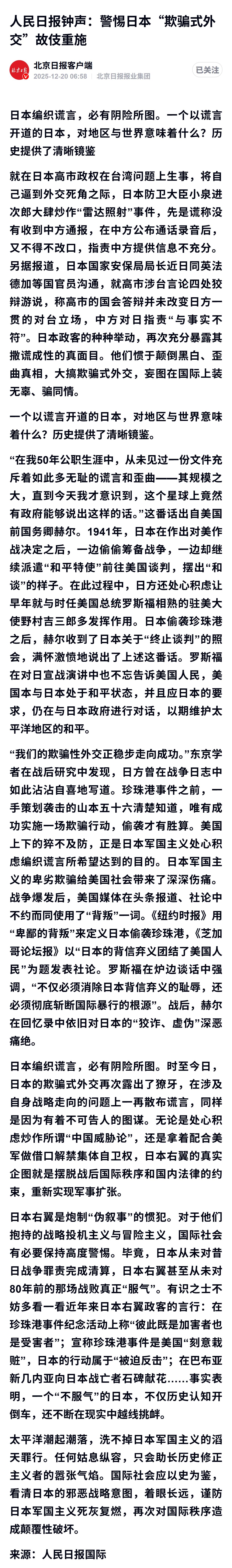 人民日报钟声:警惕日本“欺骗式外交”故伎重施