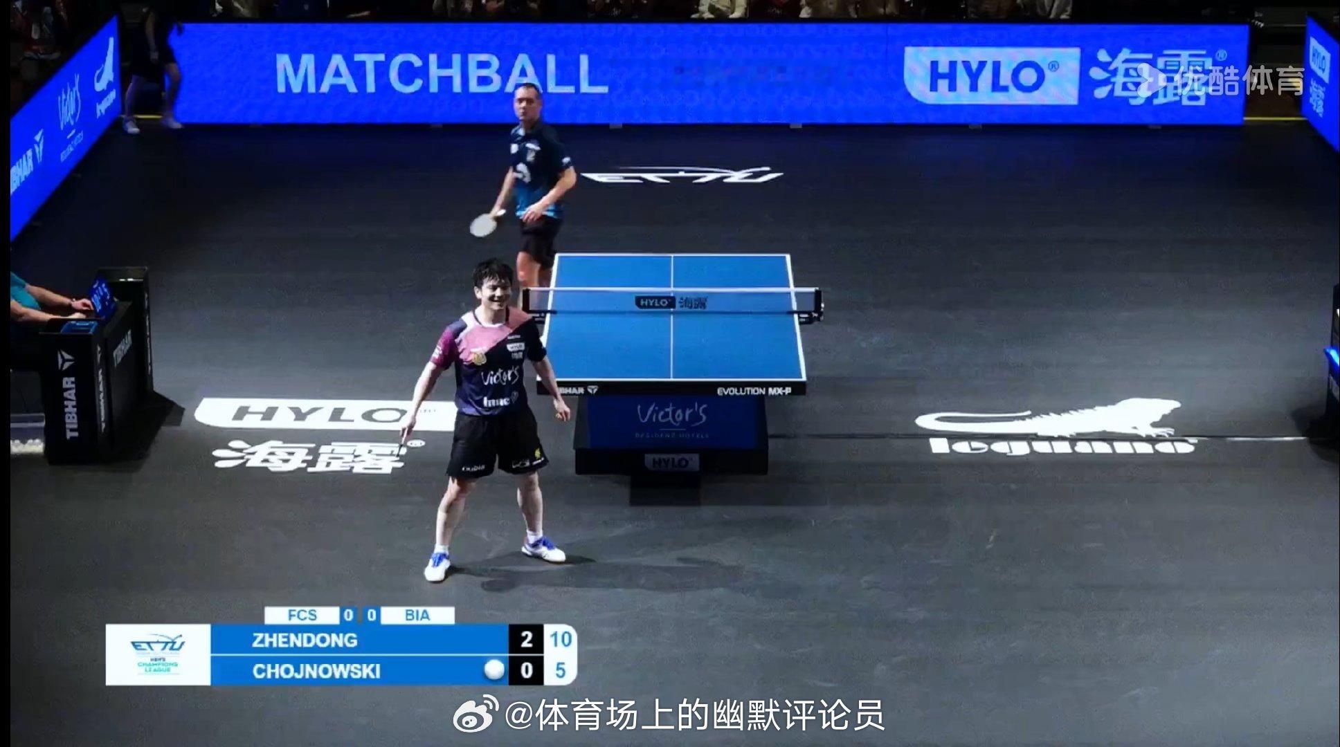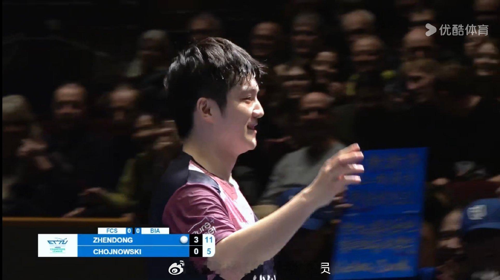 【1/8决赛第二回合 萨尔布吕肯(主场) 3-0 比亚韦斯托克】第一盘,樊振东 3-0 霍多尔斯基(11-1,11-5,11-5);第二盘,约奇克 3-0 霍伊诺夫斯基(11-3,11-4,11-3);第三盘,弗朗西斯卡 3-0 曾根翔(11-9,11-8,11-7)。晋级8强,继续加油!下场德甲联赛见!大家晚安!()