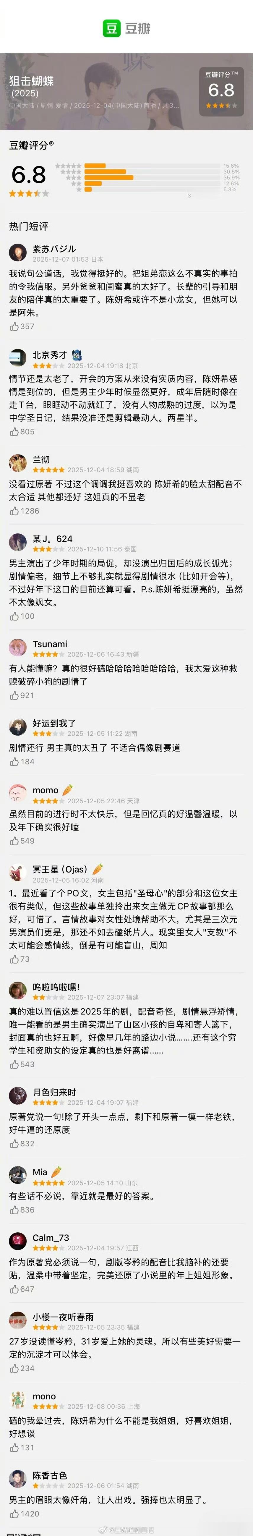 陈妍希、周柯宇《狙击蝴蝶》豆瓣开分6.8分狙击蝴蝶开分6.8