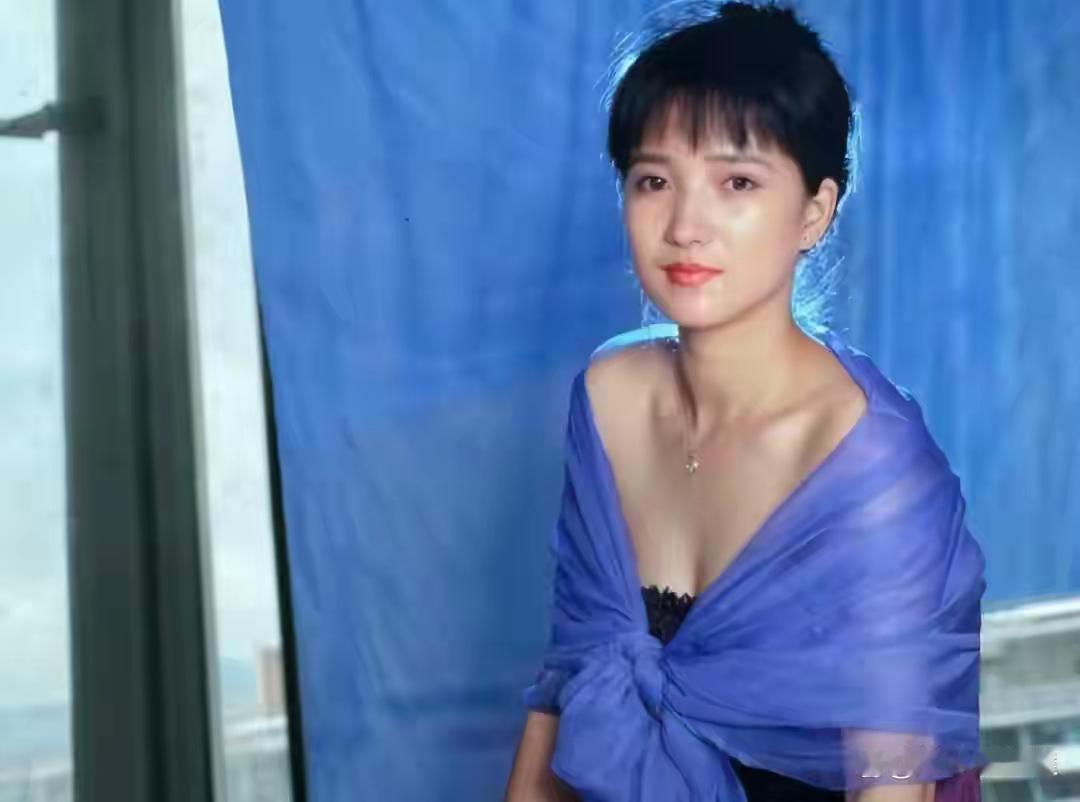 蓝色背景衬得年轻时的何晴很水灵,刘威有福气,遇见最美年华时的她。
