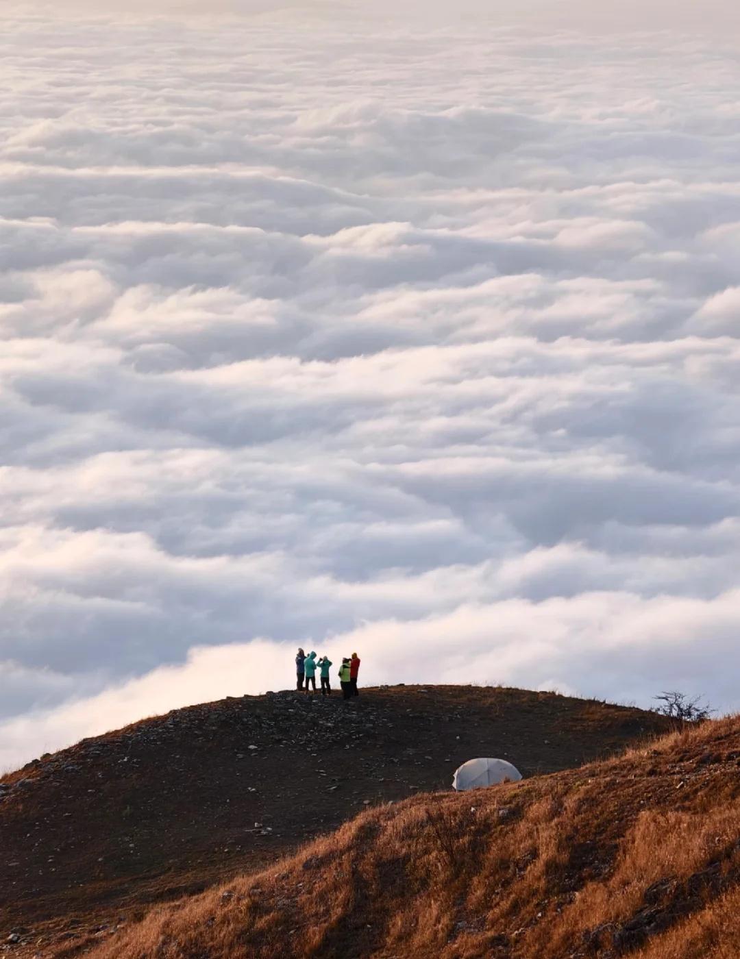 虐腿预警!!!狮子口云海暴击+徒步爽感拉满 先说重点,天鹅塘山顶营地的风是真的大