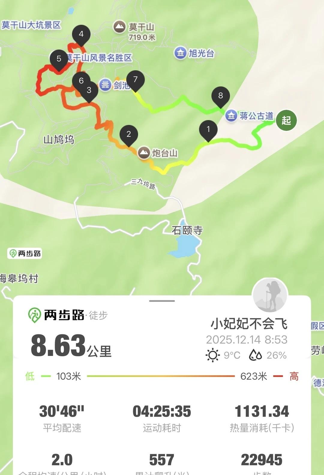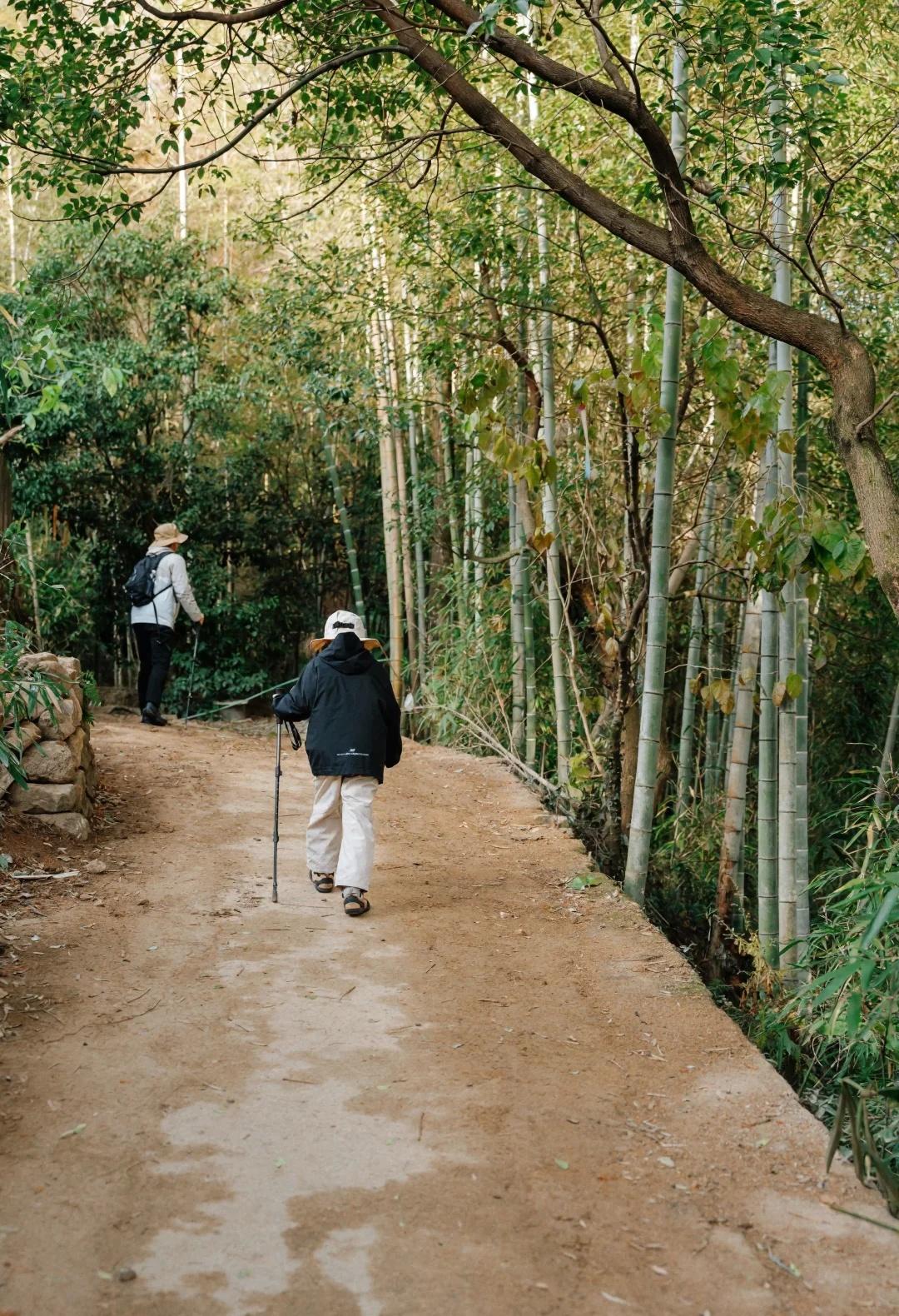 莫干山小众玩法🏃🏻‍➡️反穿蒋公古道8km环线 上周末解锁了莫干山蒋公古道“反穿玩法”,全程8公里对新手和小朋友超级友好,坡度平缓不累人,一路漫步在山野间,身心都被治愈啦 【🌟路线亮点】 ✅新手友好:前半段以台阶为主,进入景区后转为平坦水泥路,最后下坡段为舒缓土路,整体坡度友好,带娃走也毫无压力 ✅免费逛景区:反穿路线可直接进入莫干山景区,据说正穿会经过检票口 ✅风景治愈:一路穿行在山林之间,途经裸心堡,走走停停全是风景,累了的身体、皱巴巴的心情,都被山间的风轻轻抚平 【🚗交通方式】 建议自驾,导航莫皋坞,沿途有村民经营的停车场,20-30元/辆(如果停在庾村,来回得多走2公里) 【🎒徒步准备】 1️⃣装备:防滑运动鞋+分层叠穿(天冷要注意保暖)+登山杖(分担膝盖压力) 2️⃣补给:可带适量水和小零食,进入景区后就有餐厅、咖啡厅了,可中途休息用餐 【🗺️路线推荐】 莫皋坞(台阶上坡)➡️裸心堡➡️裸心堡秋千➡️百步岭➡️莫干山换乘中心➡️芦花荡公园➡️大教堂➡️穿过吊桥(会有个大滑梯)➡️回到换乘中心➡️剑池➡️蒋公古道下山(穿过竹林山溪) ·目前枫叶已经快落完了,想赏红叶的小伙伴可以收藏路线,明年秋天再来解锁 ·进入景区后路线可以自由调整,从剑池下山就行 徒步丈量世界不出远门去徒步徒步好去处