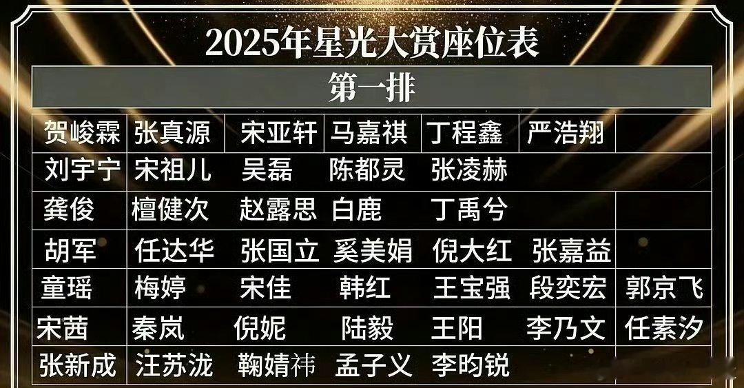 2025星光大赏网传座位图,孟子义李昀锐坐一起哎昀牵孟绕今年确实势头很猛