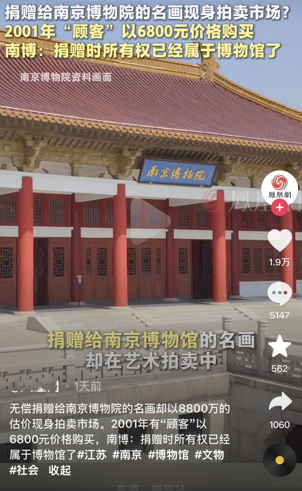 太不可思议了! 南京博物馆终于回应了:既然已经捐赠了,博物馆有权处理,没有义务归还, 两次证明这是仿制品,因为是仿制品 博物馆作价 6800 元卖掉了, 而目前这一幅仿制品被拍卖行卖到了 8800 多万, 这真的让人抓狂。 国家财产怎能随意贱卖,这算不算国有资产流失?相关责任人要不要追究? 藏富于民得深刻理解,自己的东西才会珍惜,公家的一旦有权触碰,贪婪就容易被放大。这事儿不处理好,后患无穷。以后谁还敢捐文物,宁愿毁了或卖国外。国家信誉受损,文物保护体系也会遭重创,各地博物馆可能跟风倒卖。