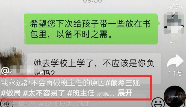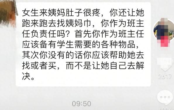 浙江一高中家长怒斥男班主任:我女儿要用卫生巾,你不能去买吗? 家校共育的边界在哪?浙江这起家长与班主任的对话,戳中了无数人的心窝子! 12月19日,浙江某高中班主任在社交平台分享的一段与家长的聊天记录,瞬间引爆网络。起因竟是女生例假期间找班主任要卫生巾未果,家长直接在群里开炮:“孩子在学校,你就得全权负责!”这番指责,让不少网友直呼“太离谱”。 事情经过其实很简单:女生例假突然造访,没带卫生巾,第一时间找班主任求助。班主任是位年轻男老师,赶紧找女老师帮忙,结果没找到,就建议女生找同学借。没想到家长得知后,直接在群里发难:“你作为班主任,为什么不提前准备?让孩子跑来跑去,这不是推卸责任吗?”更让人无语的是,家长还反问:“我女儿在学校,难道不该你全权负责?” 班主任也委屈啊!他解释说,自己确实找了女老师,但没找到,才建议女生找同学。他还提醒家长,下次可以让女儿自己准备,毕竟高中生已经具备基本的生活自理能力。可家长根本不买账,坚持认为“孩子在学校,老师就得管到底”。 这段对话被班主任发到网上后,网友们炸锅了。有人翻出班主任的社交账号,发现他经常分享课堂视频,是个认真教学的年轻老师。这下,网友们的情绪更复杂了:“男老师本来就尴尬,还要被家长这样指责,太不容易了!”“高中生了,连卫生巾都不自己准备,家长平时是怎么教育的?” 当然,也有网友表示理解家长的心情:“孩子突然来例假,家长肯定着急,但把责任全推给老师,确实不合适。”还有人提出建议:“初中可以准备小药箱,放点卫生巾、创可贴啥的,但高中生真没必要,孩子自己能搞定。” 其实,这起事件的核心,还是家校共育的边界问题。家长的心情可以理解,毕竟孩子是自己的心头肉,但观点实在难以认同。孩子在学校,老师当然要负责安全和教育,但生活细节,尤其是这种隐私性较强的事情,真的能全推给老师吗? 就拿这次事件来说,母亲作为最了解女儿身体状况的人,完全可以在例假前提醒女儿准备卫生巾,或者在她书包里放一包备用。万一突发情况,孩子可以找老师或同学帮忙,这是再正常不过的社交行为。可家长却直接指责老师“推卸责任”,甚至要求“全权负责”,这显然是把家校共育的“共”字理解错了。 家校共育,不是家长把孩子往学校一扔,就万事大吉;也不是老师大包大揽,替家长解决所有问题。而是双方各司其职,分工明确,平等沟通,默契配合。家长要关注孩子的成长细节,培养他们的自理能力;老师要负责教育教学,引导孩子树立正确的价值观。只有这样,家校共育才能真正发挥作用,孩子才能健康成长。 这起事件也给我们提了个醒:家校沟通,尊重和理解是基础。家长要信任老师,老师也要理解家长的焦虑。遇到问题,多换位思考,少指责抱怨。毕竟,我们的目标是一致的,都是为了孩子好。 最后,想对那位家长说:孩子在学校,老师确实会尽心尽力,但生活细节,还是得靠孩子自己和家长。别把责任全推给老师,也别让孩子失去成长的机会。毕竟,他们总要学会独立面对生活,不是吗? 这起事件,你站哪边?欢迎留言讨论!