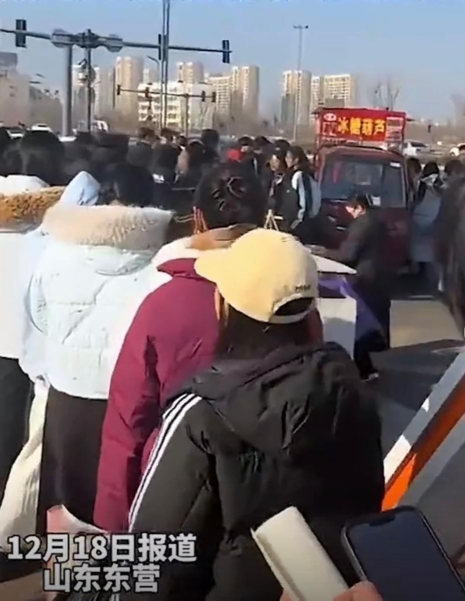 山东东营,队伍排了上百米,每个人都在寒风中安静等待——只为买一串大爷的糖葫芦。