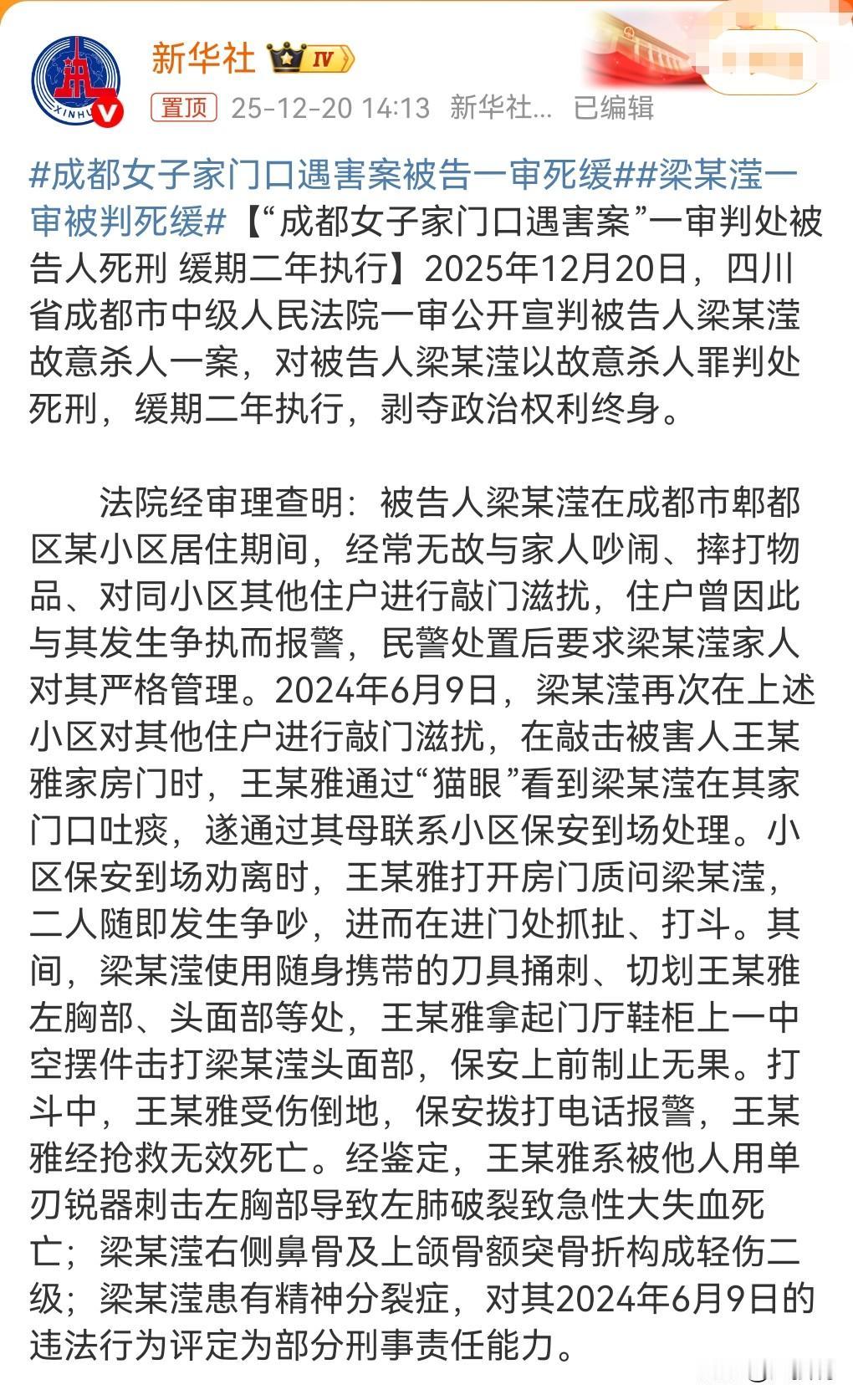 真的是太可笑了,哪有这么多精神病? 这应该判死刑,早日执行才对呀,为什么只判了个死缓啊? 要知道死者失去的可是宝贵的生命啊。 12月20日,成都女子家门口遇害案被告一审死缓。 我相信死者的母亲肯定很难接受,因为只判了个死缓。 死者真的是太可惜了。 感觉正义又缺席了。