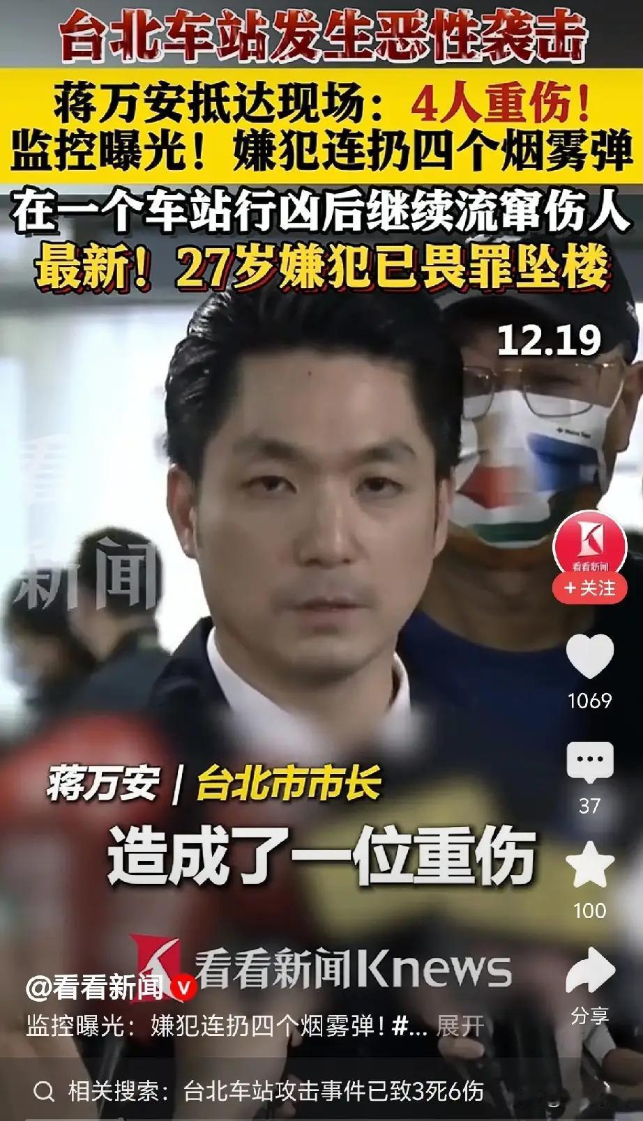 我很想看到胡锡进对台湾省台北捷运车站恶性袭击事件的看法。 当然不止胡锡进一个人,还有一帮在头条可以让你禁言下架限流闭嘴的大V,别问我,有此遭遇的人都知道。 现在被这些吹的台湾捷运不用安检,台湾人反向赞美大陆安检了。 点右上角关注我,我们一起去看这个魔幻的世界