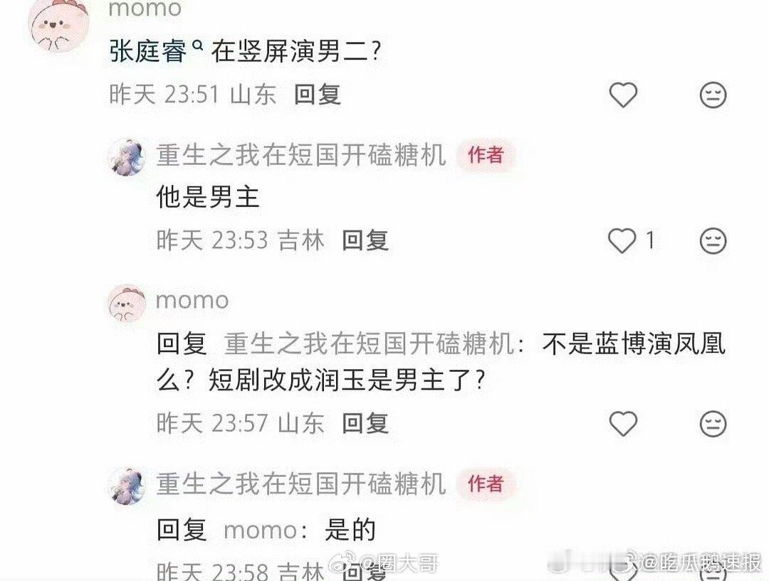 短剧香蜜男主变润玉啊这,这是啥情况啊,没想到电视剧《香蜜沉沉烬如霜》的男主是旭凤,到短剧版这里,男主就成了润玉啊。就是说谁懂这个反差的感觉,好在杨紫饰演的锦觅,从始至终都是大女主啊~