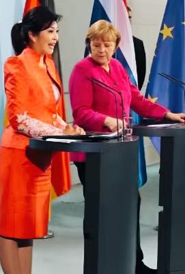 默克尔这是在关注英拉的什么呢? 默克尔看的挺投入啊!看的貌似已经走神了! 是被英