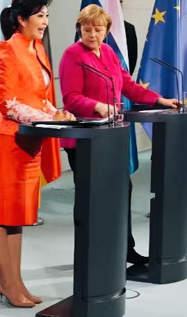 默克尔这是在关注英拉的什么呢? 默克尔看的挺投入啊!看的貌似已经走神了! 是被英拉的身材还是穿衣打扮给深深吸引了呢?