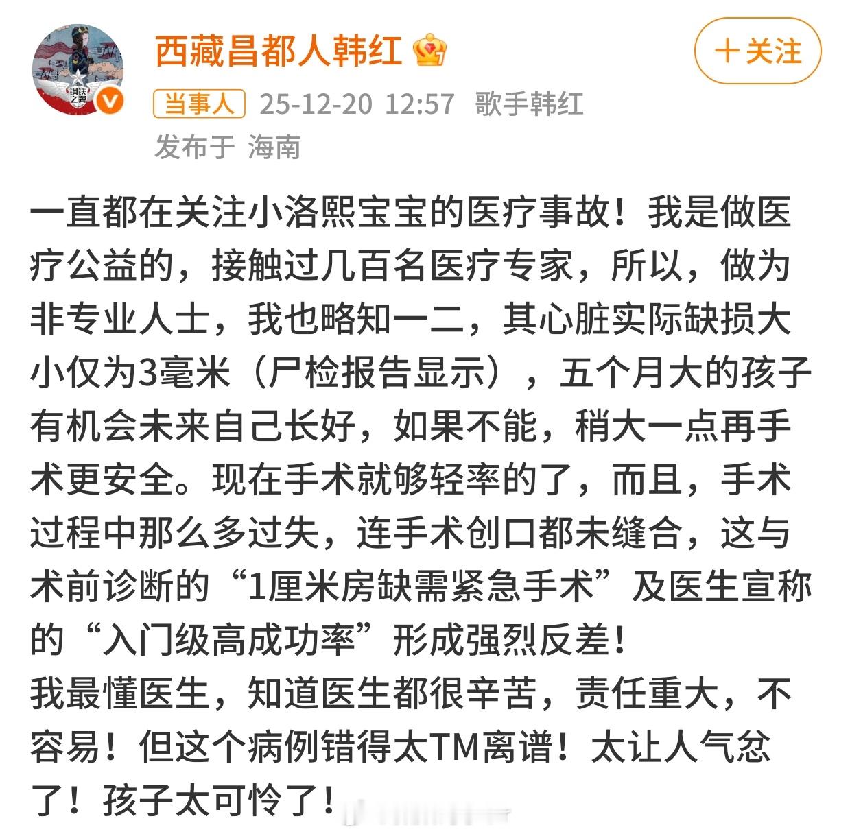 韩红为小洛熙宝宝发声地狱空荡荡,恶魔在人间
