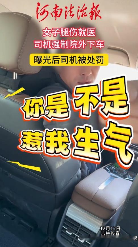 “必须严惩!”12月12日,吉林长春,一女子因腿受伤,打车去医院治疗,下车地点定在医院里面,可司机送到门口就要求她下车,表示里面是内部路,自己开不进去!女子坚决不下车,结果遭到司机持续辱骂。网友:必须实名曝光! 现在不少人出门,都会叫个网约车,一来安全可靠,二来价格透明,不用担心被司机“宰客”,而且对于行动不方便的乘客,司机们还会主动帮忙。 女子前不久因为腿部受伤,需要每天去医院治疗,在这段时间,她出行都是靠网约车。 这天,女子又叫了一辆网约车去医院,司机很快就来到小区楼下,接上了女子,随后便朝着医院的方向驶去,可到了门口,司机就把车停下了,要求女子下车。 女子告诉司机下车位置是里面,让他把车开进去,这么长的距离自己走不过去。可是司机却表示里面是内部道路,他无法进去。 女子只能耐心的告诉司机,开进去直接出来,这点时间没有问题,也不会收费,一再要求他把自己送到楼下。 不料,司机却直接怒了,质问女子是不是要惹他生气,还对着她持续辱骂。二人就这么一直在车上僵持,最后司机道了歉并把女子送进去。 网友看后表示,估计是看到女子在录视频,不想自己“火一把”才认了错,这种人做服务行业还是差了点,眼瞅着人家腿有伤,肯定是能多往里走一些就多走一些比较好。 信息来源:《女子称腿伤就医司机强制院外下车。这事你怎么看?》潮汐视频