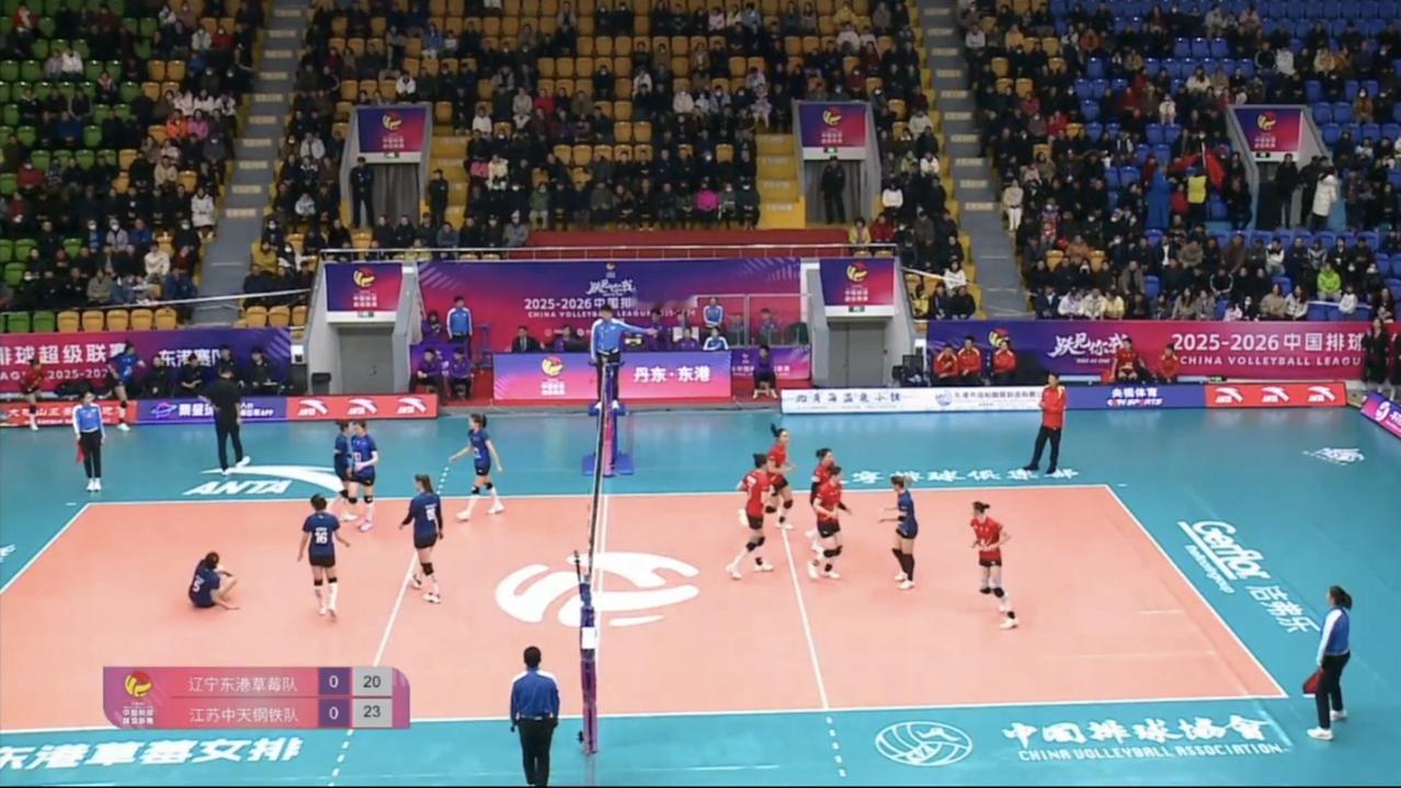 没想到,江苏女排第一局首发的有周页彤,范伯宁,在中段前和辽宁打得很胶着迟迟不能拉开比分,一个原因是有许多的破坏性拦网,而对手拦网更好,江苏女排25-22有些惊险拿下这一局。