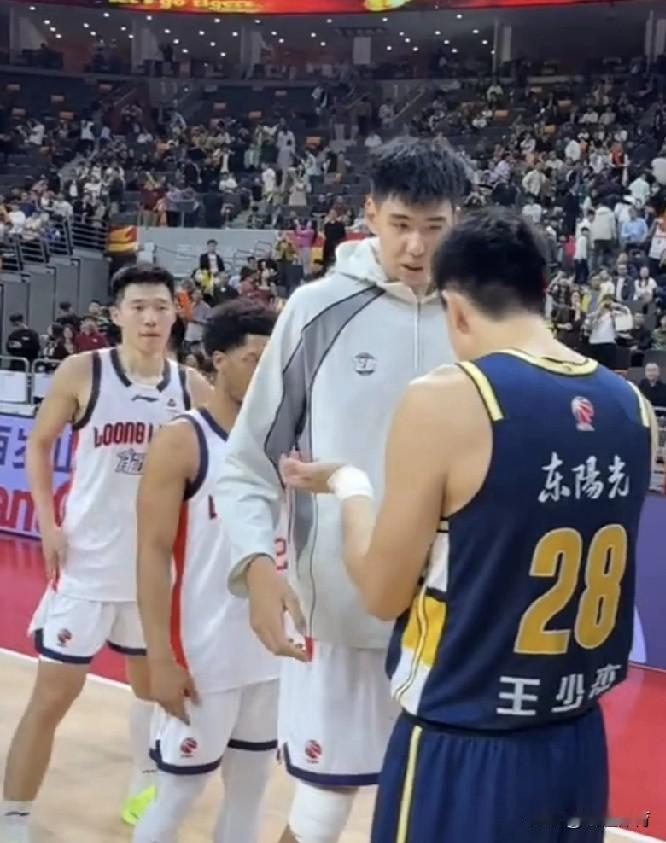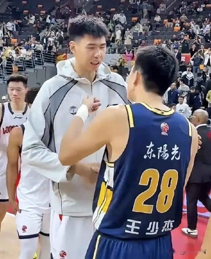 徐昕这是对王少杰有怨气啊?赛后握手环节,还去找王少杰说他膝盖被弄伤的情况,不然,他今晚应该还能有更多上场时间,有更多的表现机会,尤其是在杜锋面前。 不过,王少杰面对昔日的队友,也没有什么好客气的,也指了自己的手腕,应该也是说在和徐昕的对抗中受了些伤。 这么看下来,两人也算都不吃亏吧,一个伤了膝盖,一个伤了手腕,都缠上了厚厚的绷带。