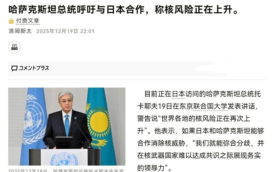 太尴尬啦,前脚日本多次放出风要突破无核三原则,发展核武器,后脚在日本访问的哈萨克斯坦总统托卡耶夫呼吁和日本合作消除核威胁。 真是打人不打脸,揭人不揭短,哈萨克斯坦总统托卡耶夫就在日本演讲时,做出公开呼吁消除核威胁。不知道,陪同的日本官员听了脸上能挂住吗?
