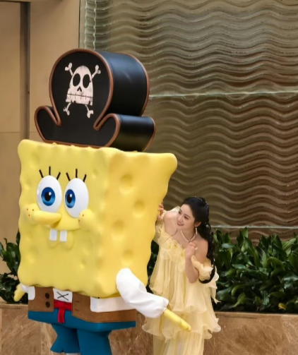 双倍可爱暴击!沈月和海绵宝宝同框贴贴,安利《海绵宝宝:深海大冒险》的模样超真实,像极了疯狂给朋友种草的我,快乐小太阳属性拉满!