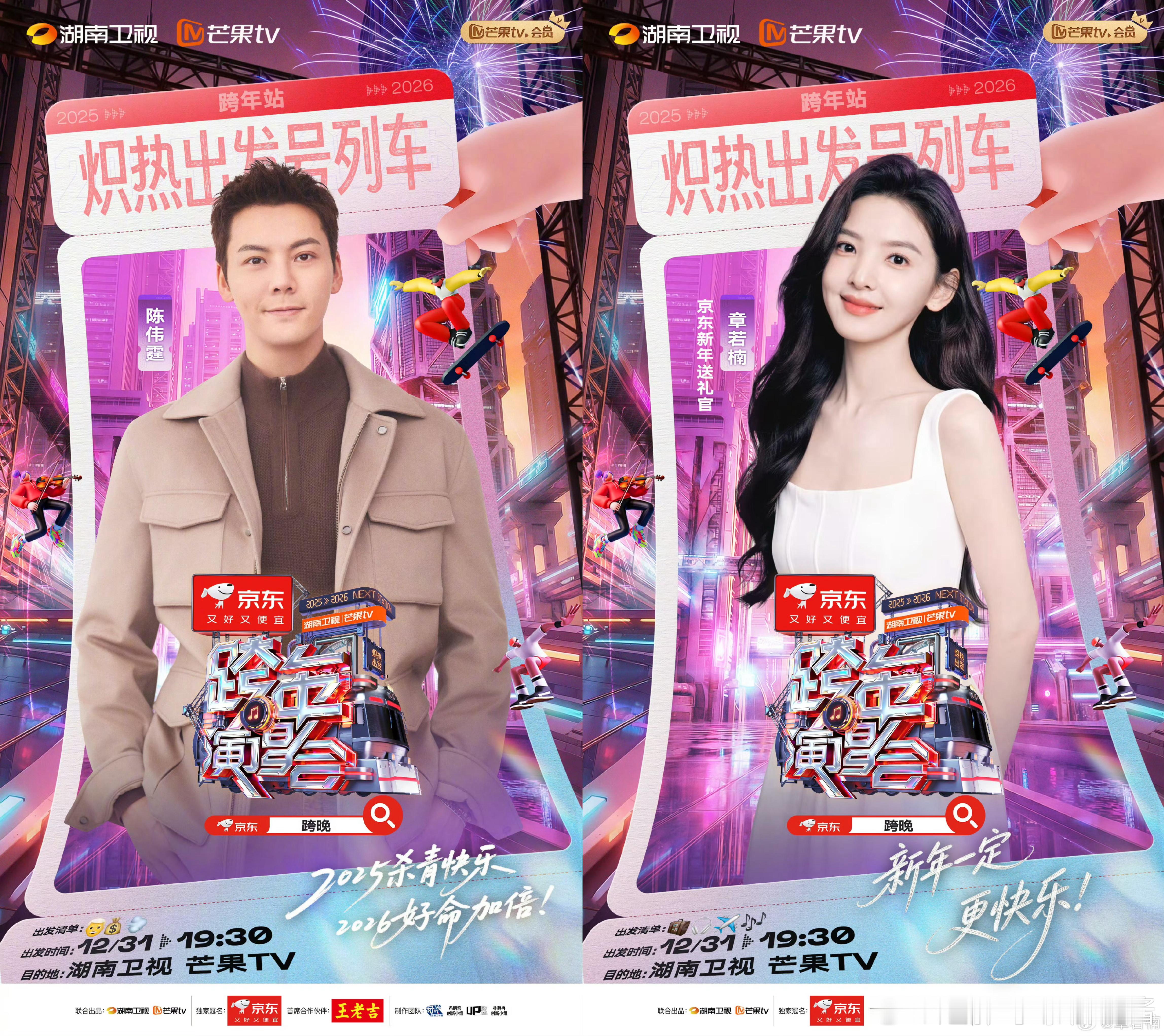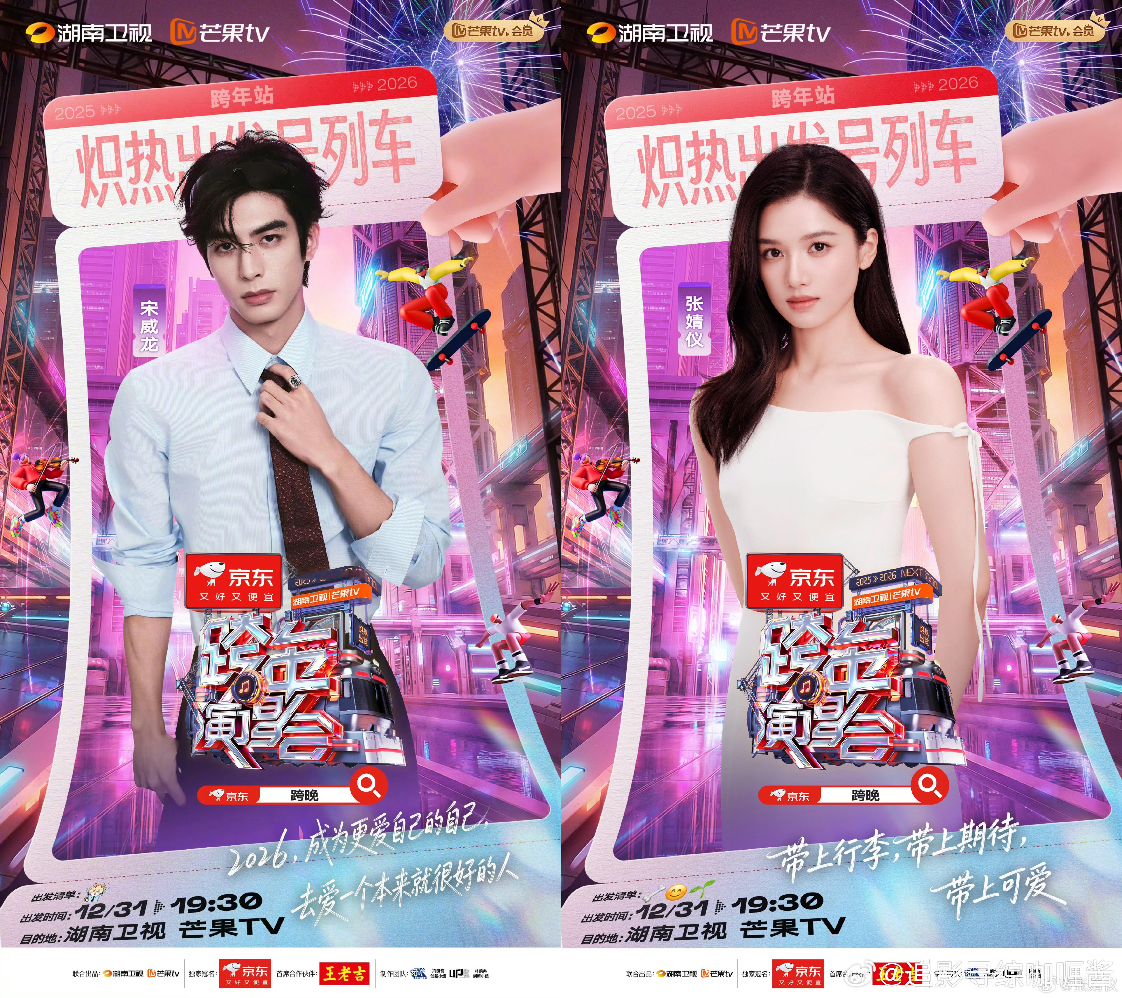 湖南卫视跨年演唱会5对cp阵容:王鹤棣沈月、宋威龙张婧仪、黄子韬徐艺洋、张凌赫王楚然、陈伟霆章若楠湖南卫视跨年演唱会