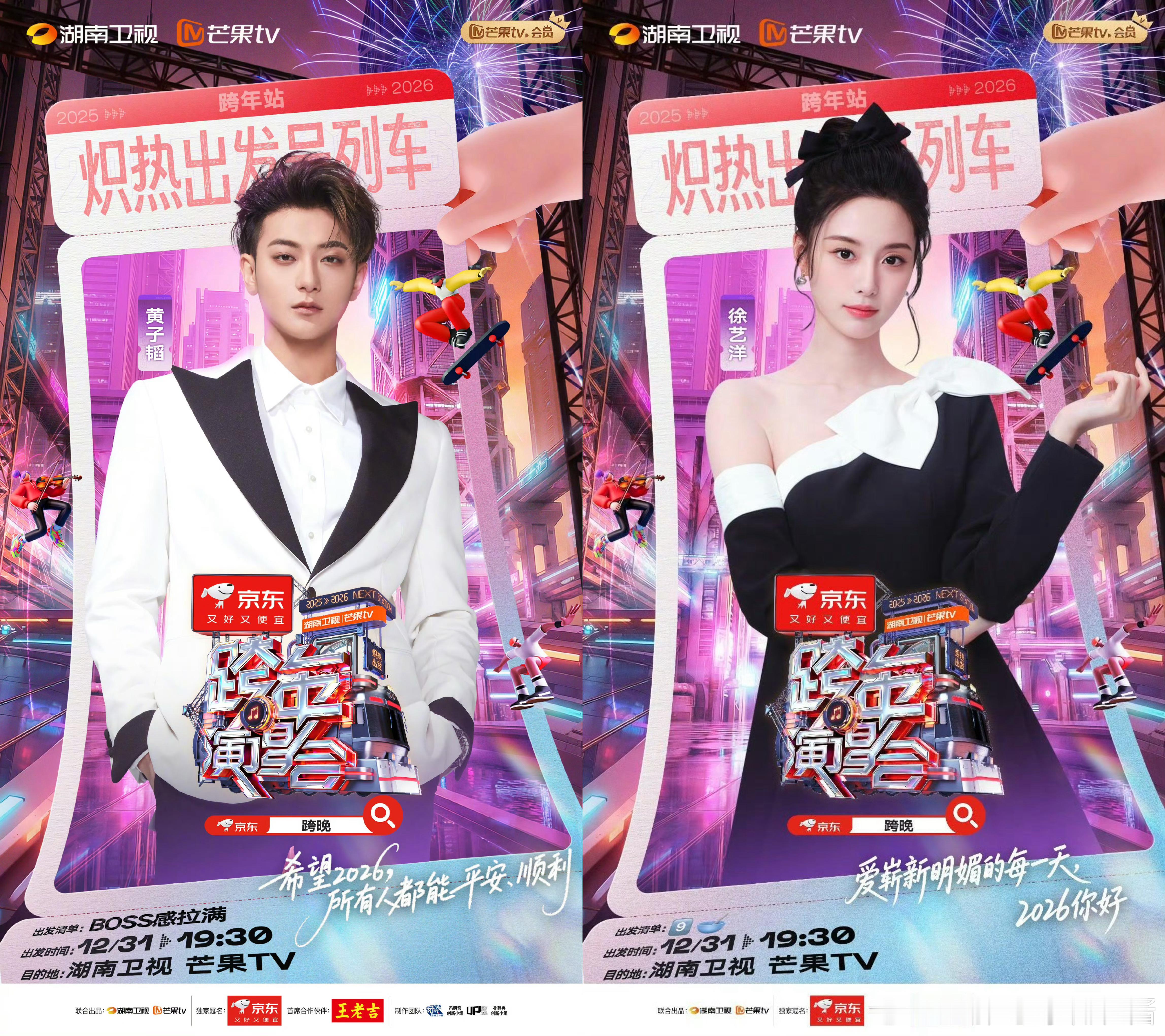 湖南卫视跨年演唱会5对cp阵容:王鹤棣沈月、宋威龙张婧仪、黄子韬徐艺洋、张凌赫王