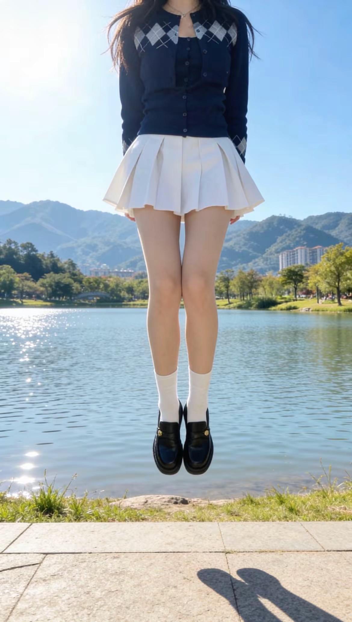 蹦跶一下,差点把裙子甩飞~本来想在旗山湖拍个优雅的背影跳跃,结果跳成了弹簧人,腿倒是笔直了,就是表情管理彻底下线~福州旗山湖 搞笑拍照 跳跃翻车现场小短裙